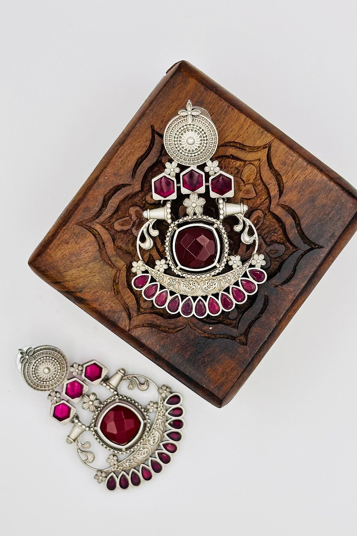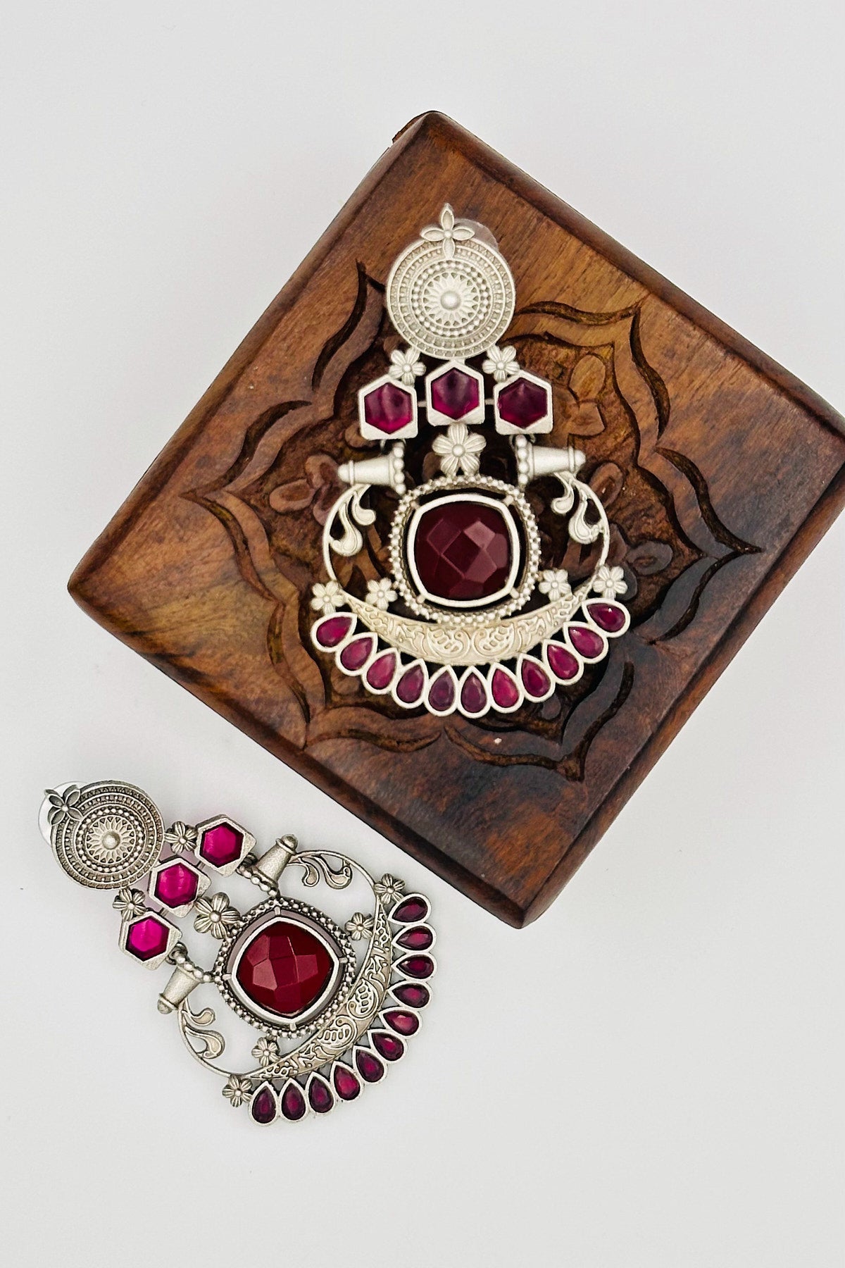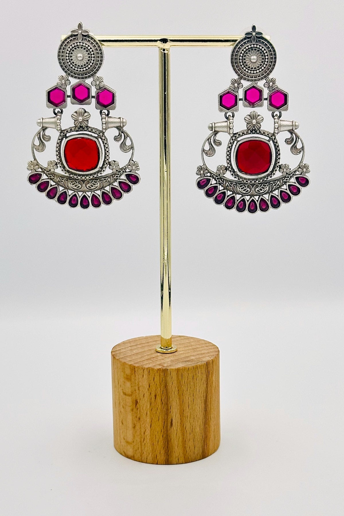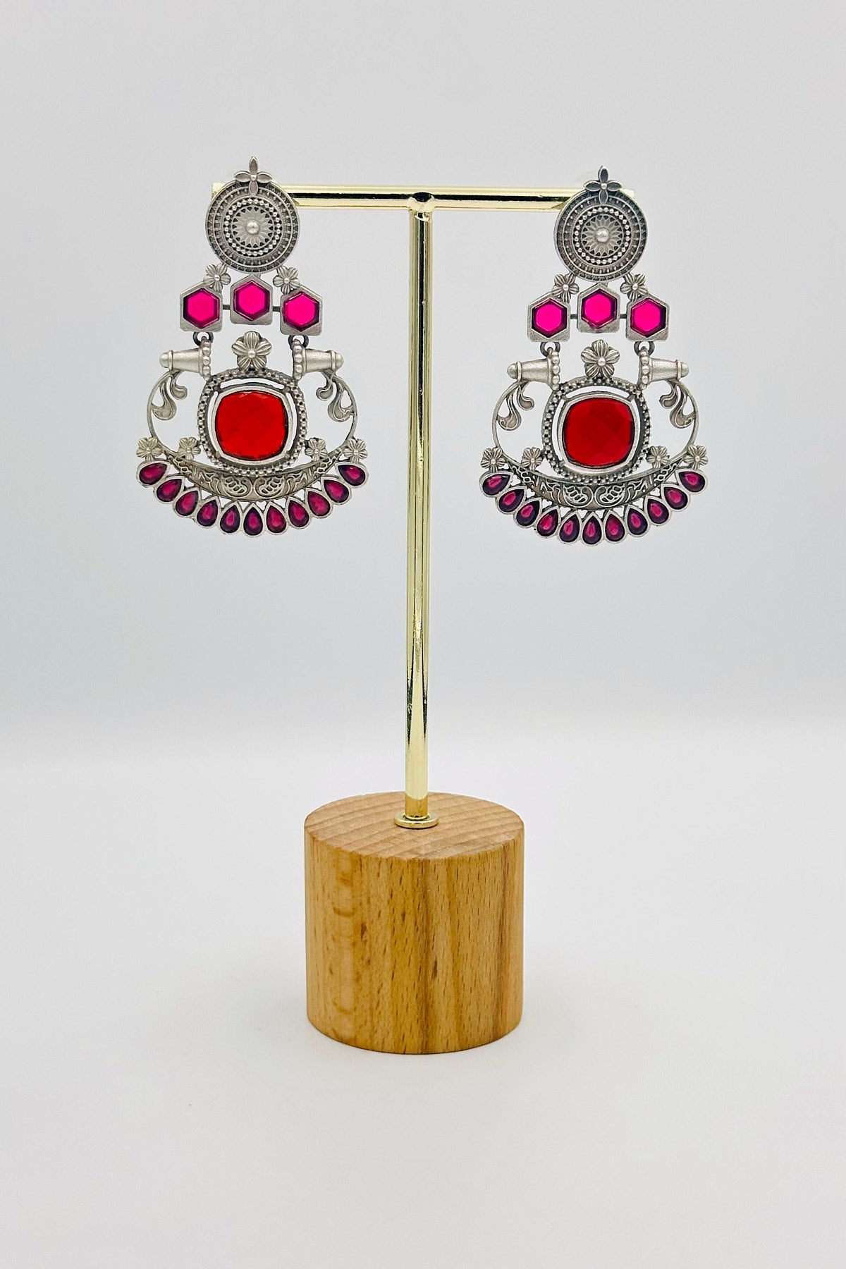 Silver Earrings with Red and Pink Stones - swadeshsouq.com