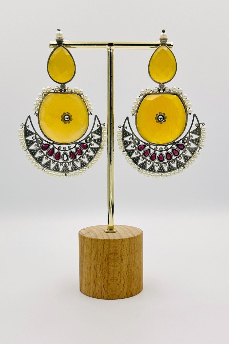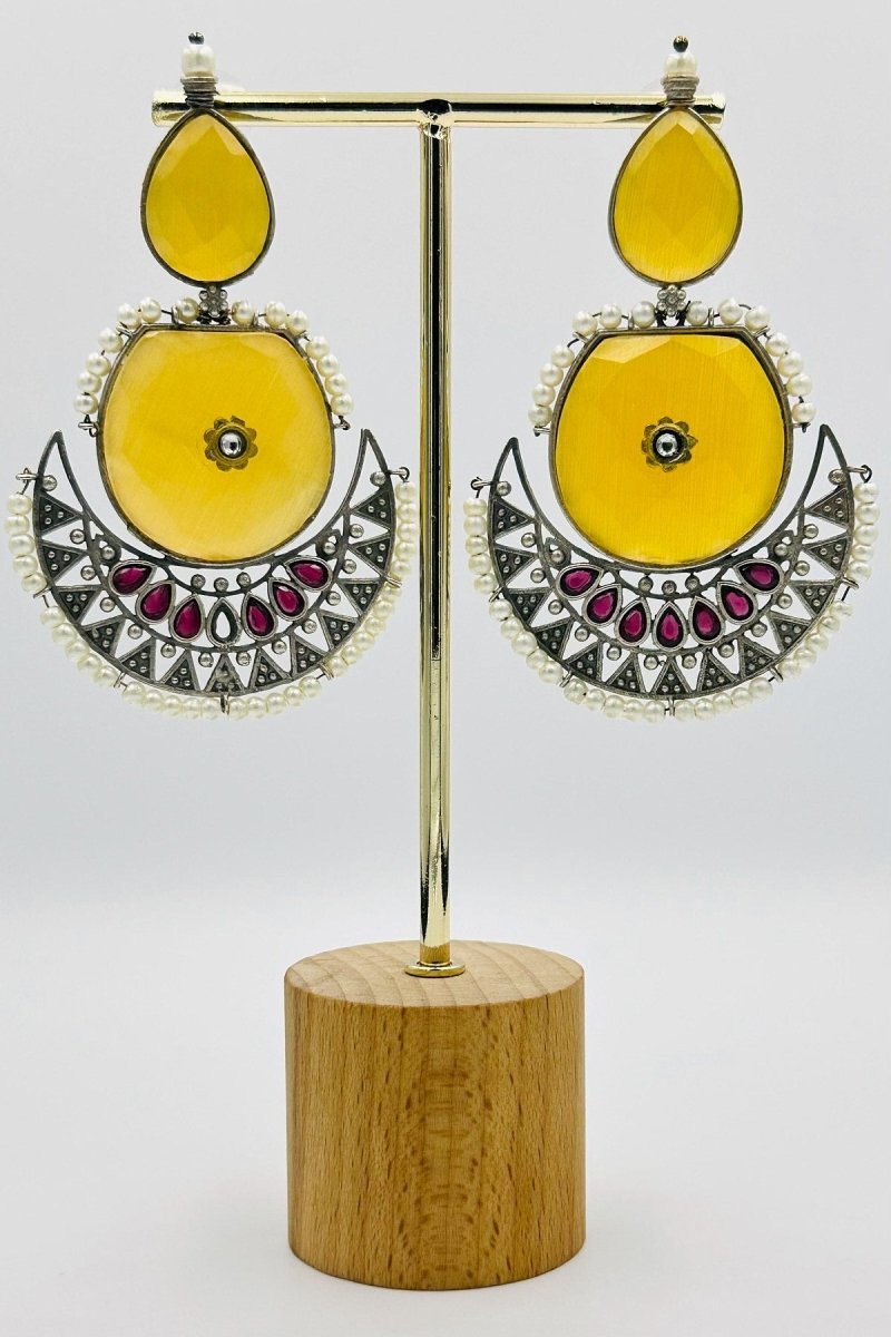 Sunbeam Splendor: Yellow Crystal Crescent Earrings - swadeshsouq.com