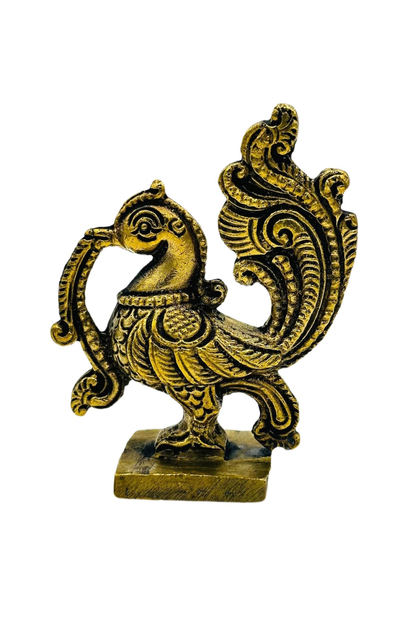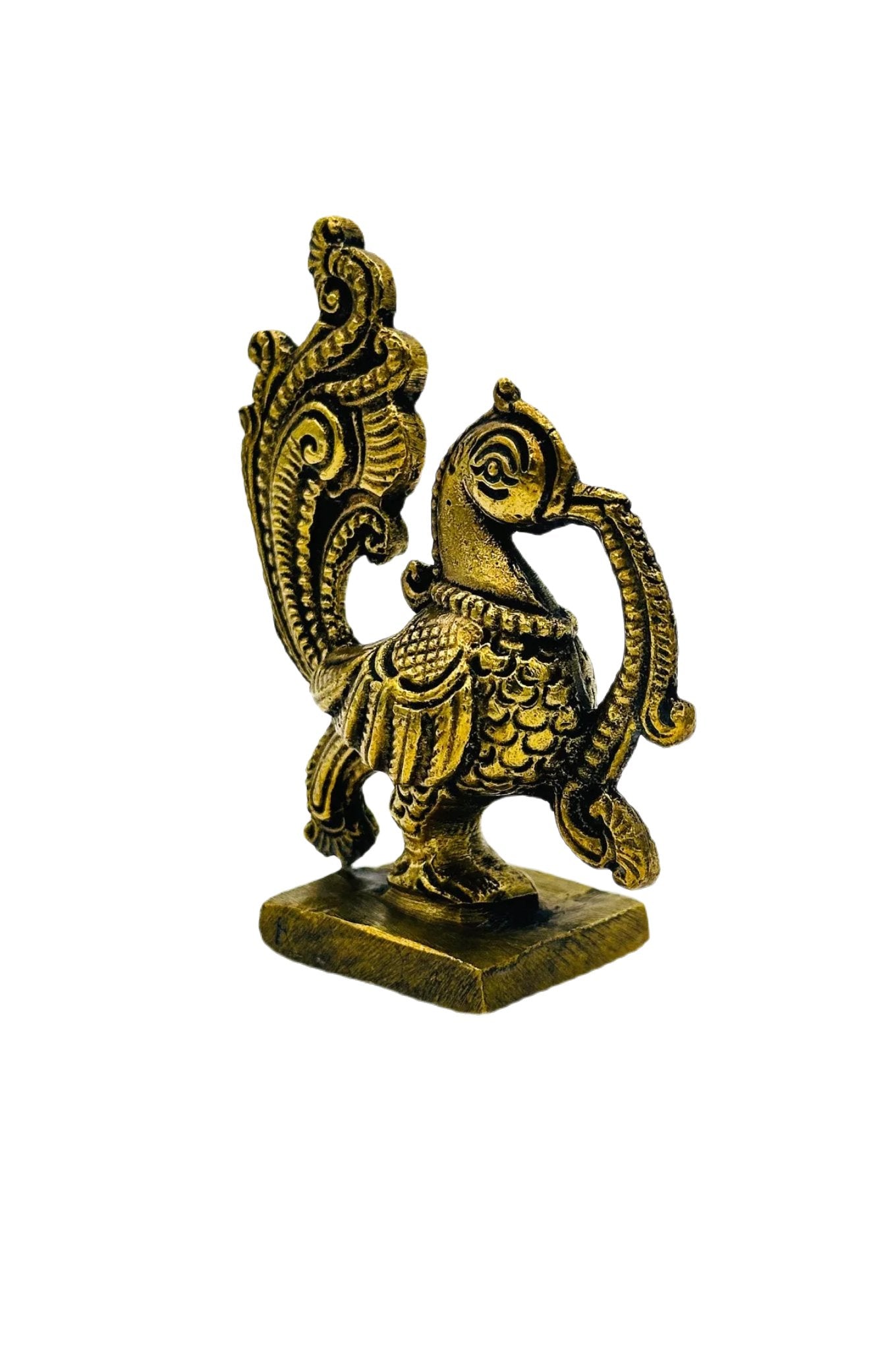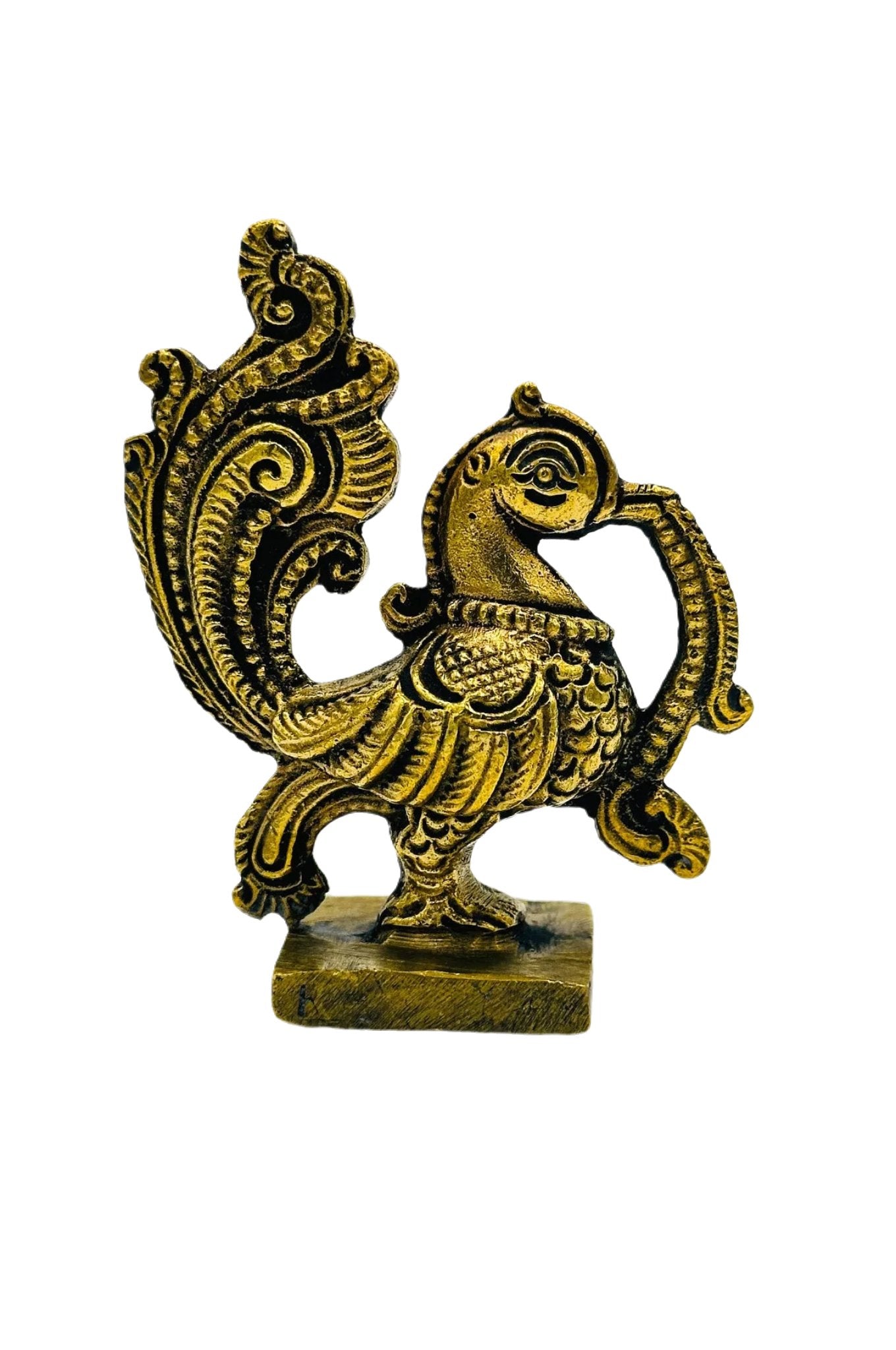 This elegant brass paperweight, adorned with a meticulously crafted peacock design, combines functionality with artistic flair. The peacock, a symbol of grace and beauty, is rendered in exquisite detail, lending a warm, golden glow to any setting. Perfect for use as a sophisticated desk accessory or as a centerpiece for your table decor, it symbolizes nobility and vibrancy. Ideal as a thoughtful gift for special occasions, this piece not only adds a touch of elegance but also embodies a piece of artful tradition, making it a charming representation of craftsmanship and style.