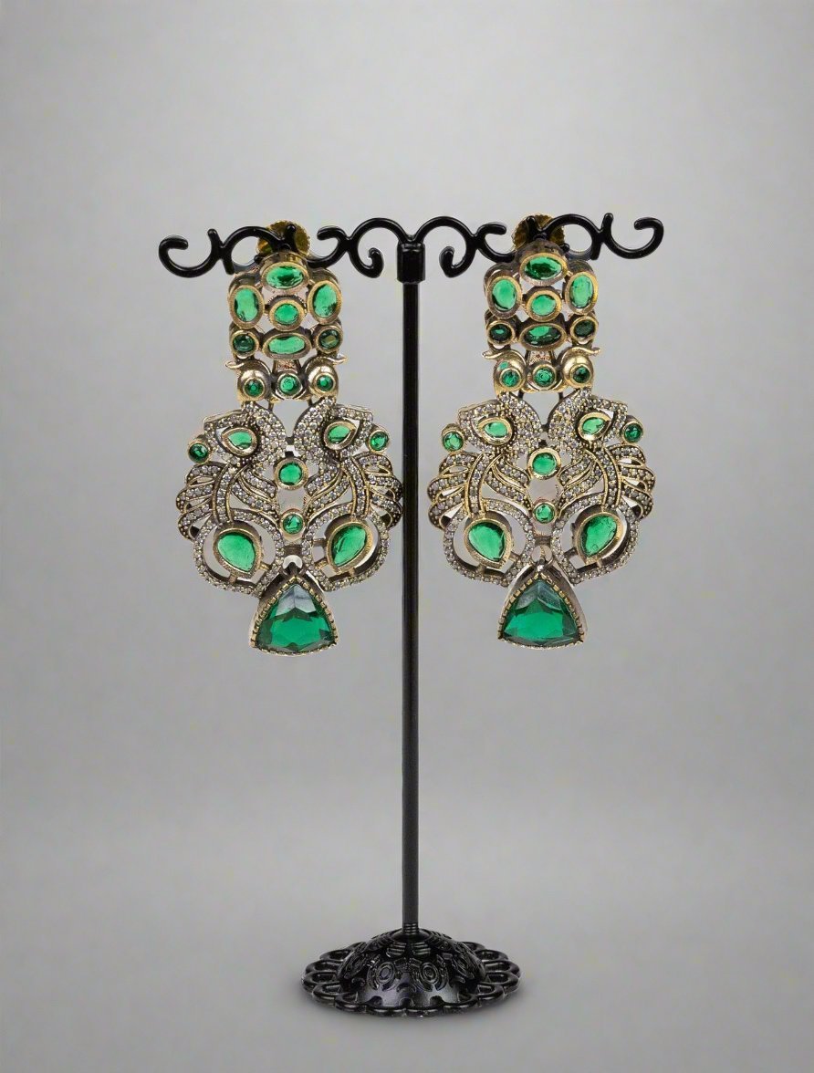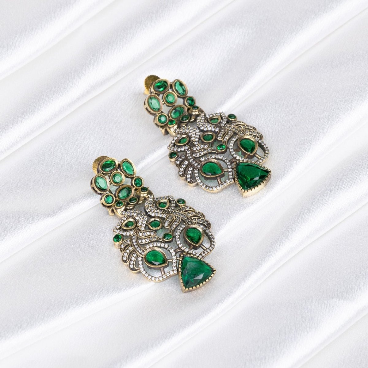 Elevate your style with these Emerald Plume Fashion Earrings, exquisitely crafted with vibrant green cubic zirconia stones and a stunning peacock-inspired design. These fashion earrings bring a touch of luxury to any outfit, perfect for both special occasions and everyday elegance. A dazzling blend of modern glamour and timeless beauty, these earrings are a must-have for any jewelry collection.