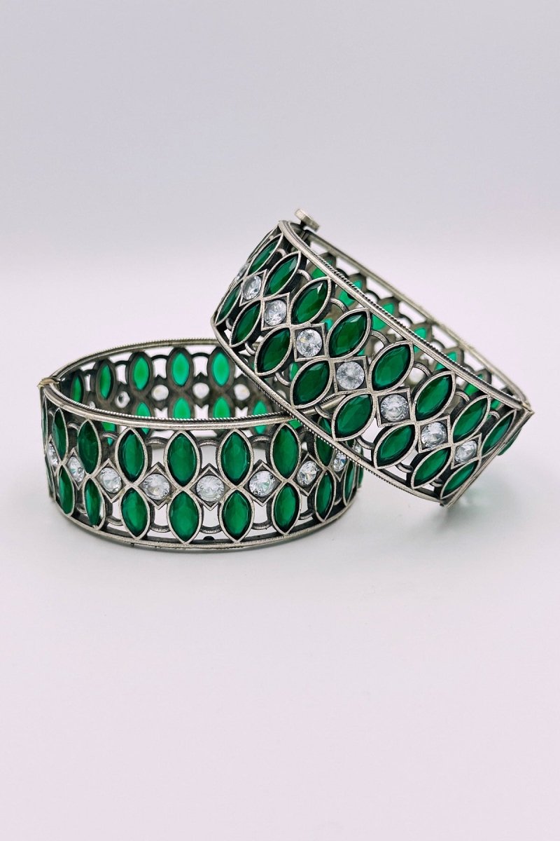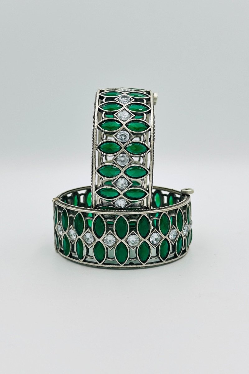 Emerald Radiance: Green Silver Bangles - swadeshsouq.com