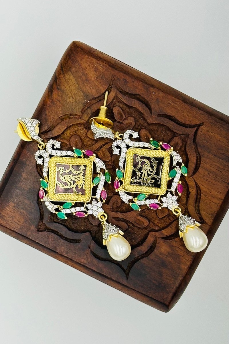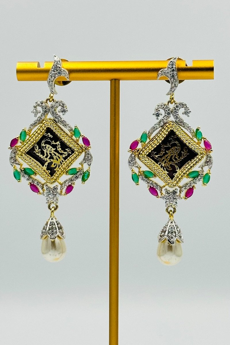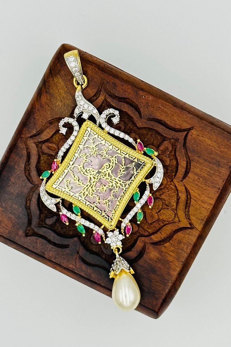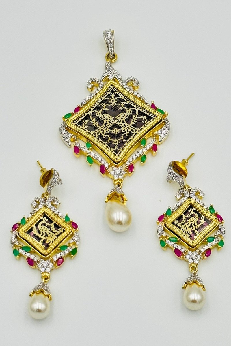 Exquisite Meenakari Pendant Set with CZ Stones and Pearl Drops - swadeshsouq.com