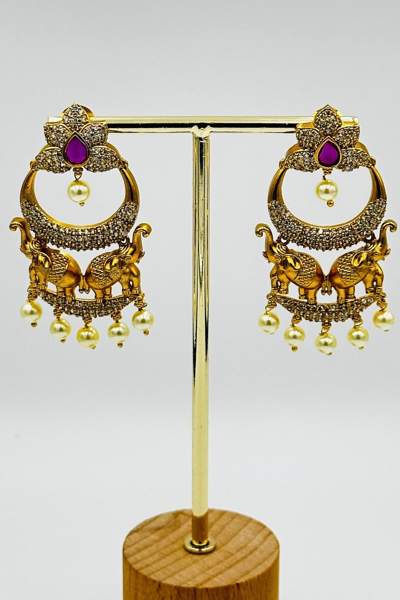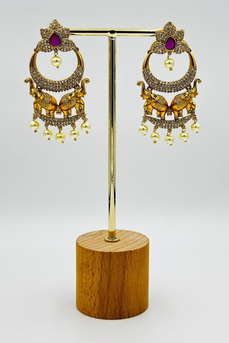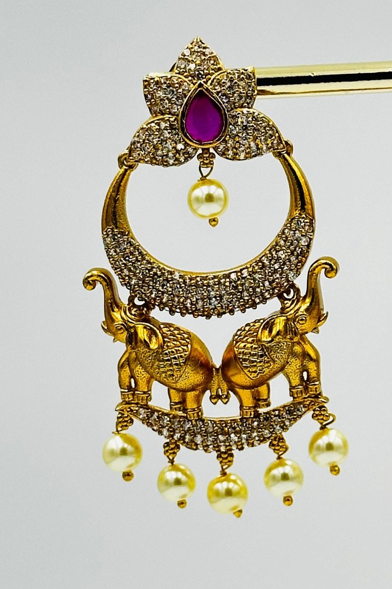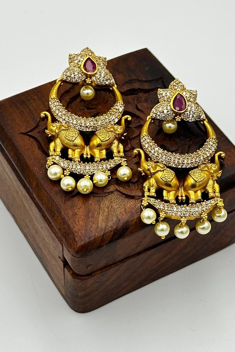 Gold Elephant Chandbali Earrings with Pearl Drops - swadeshsouq.com