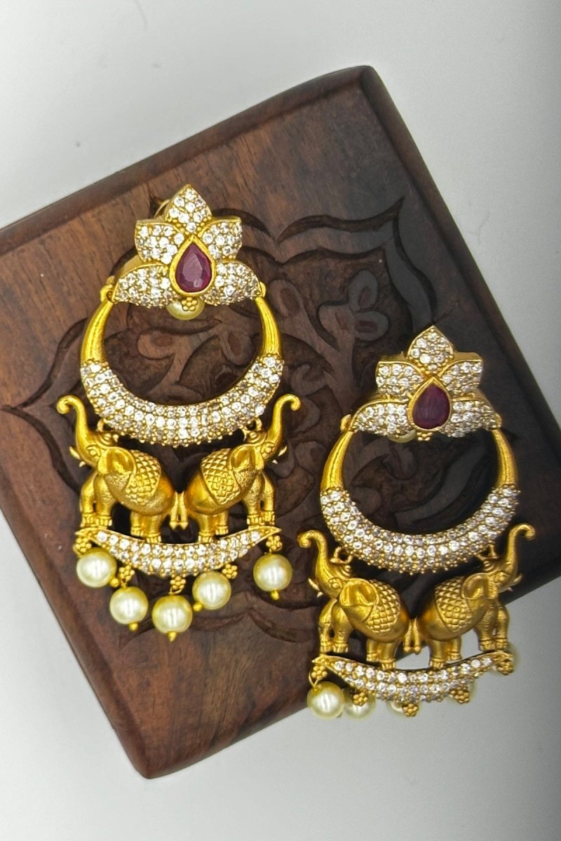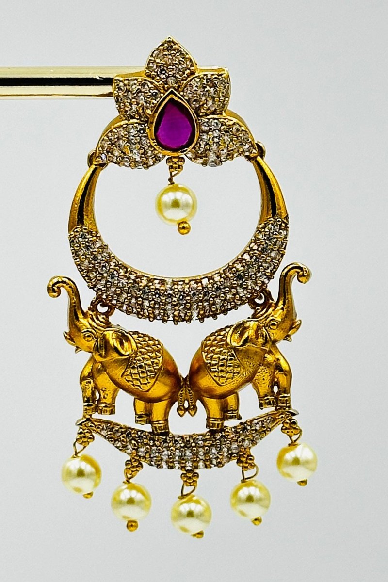 Gold Elephant Chandbali Earrings with Pearl Drops