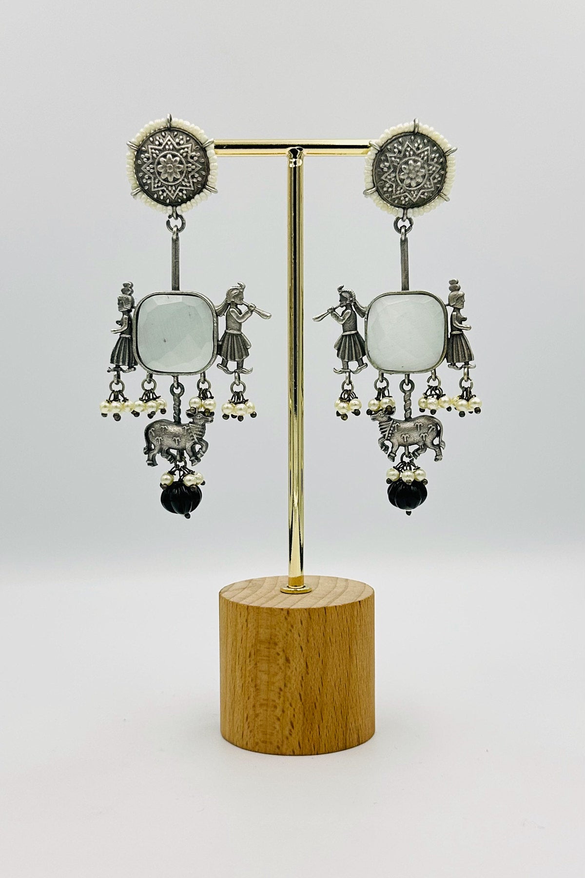 Uncover the essence of "Musical Melody" with our Grey Silver Danglers, showcasing intricate and artistic motifs that captivate the eye. These elegant earrings, enveloped in subtle shades of grey, offer a harmonious blend of beauty and sophistication. Elevate your style with this exquisite piece of artistry that effortlessly captures attention.
