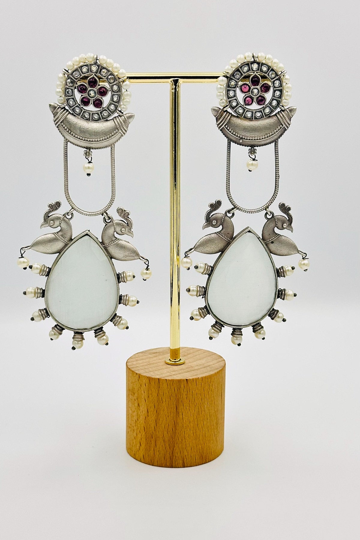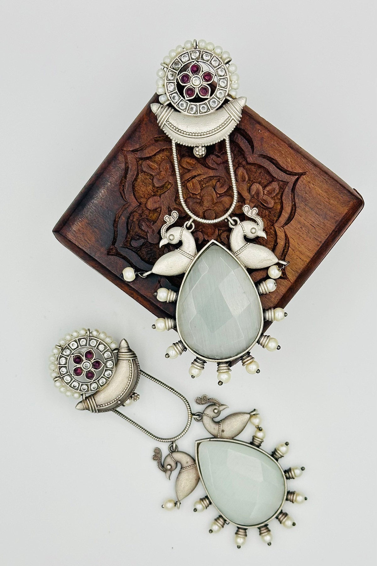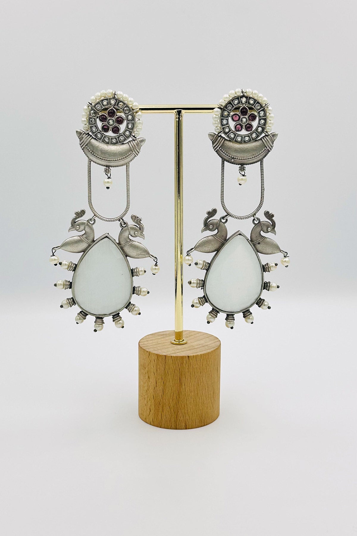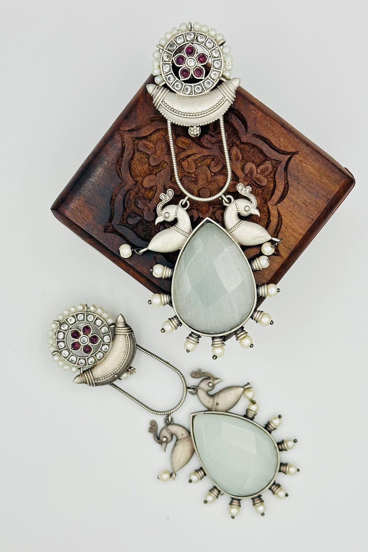 Elevate your elegance with our "Sophisticated Simplicity" long earrings, featuring intricate silver designs that gracefully complement the understated beauty of grey stones. These stunning earrings artfully blend sophistication and simplicity, making a refined and understated statement. Adorn yourself with these exquisite pieces to exude an aura of timeless charm and graceful allure.