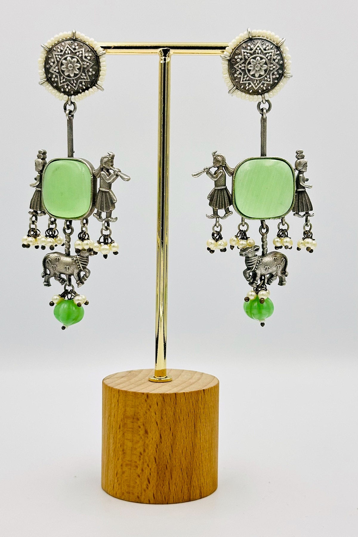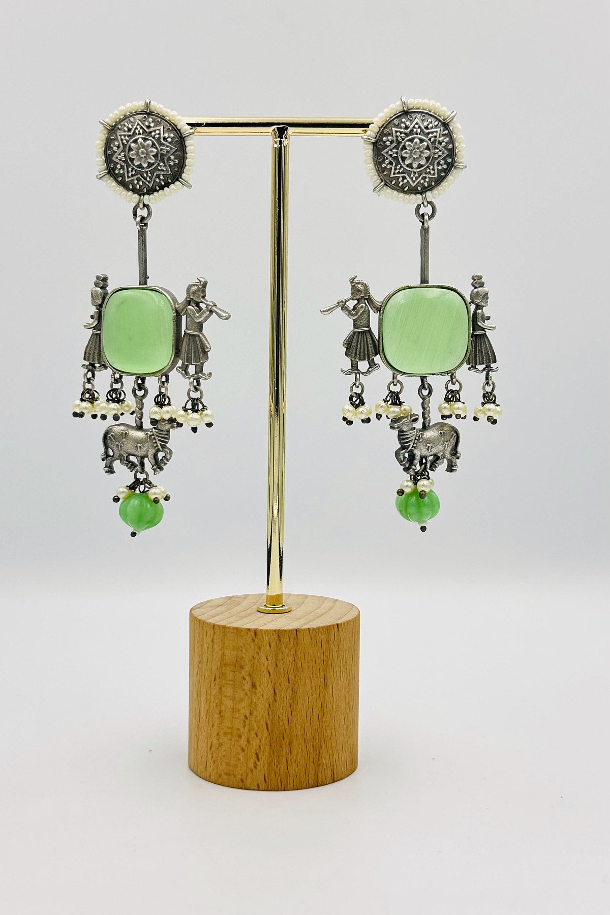 Immerse yourself in the soothing notes of "Musical Melody" with our Mint Green Silver Danglers, featuring meticulously crafted and artistically inspired designs that exude elegance. These graceful earrings, adorned in refreshing mint green tones, offer a harmonious blend of beauty and sophistication. Elevate your style with this exquisite piece of artistry, destined to captivate all who admire its serene allure.