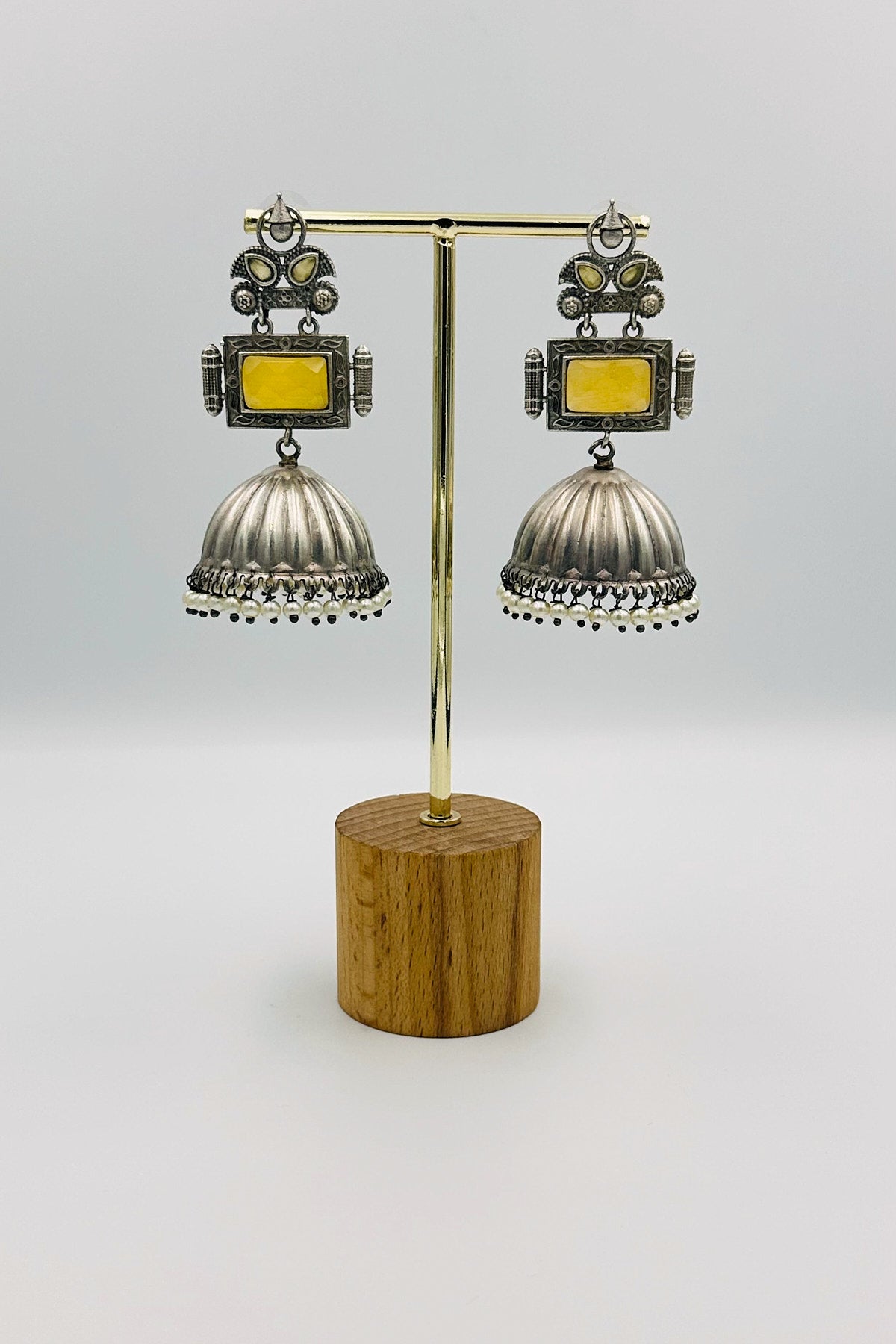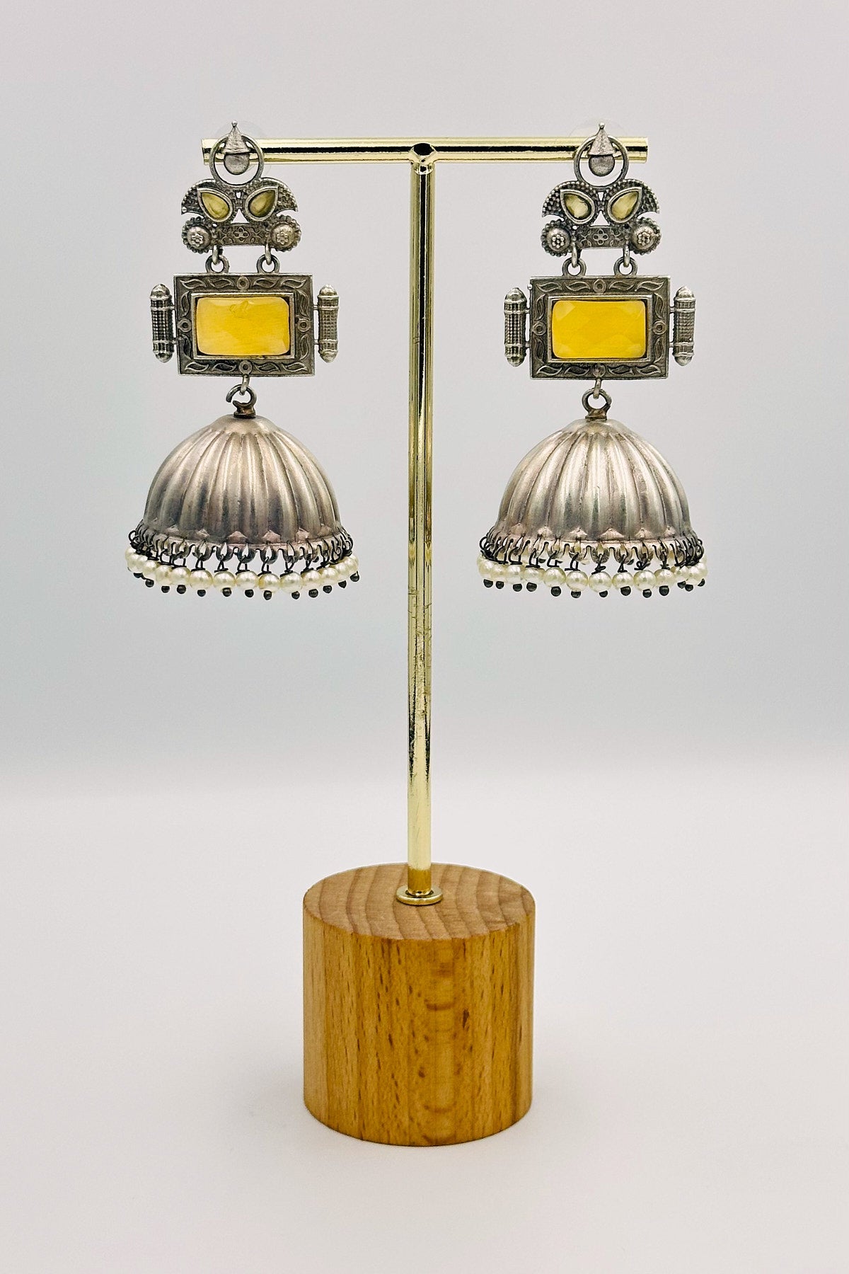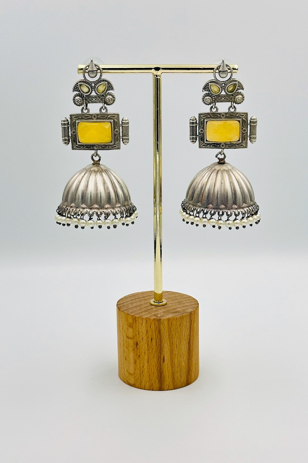 Indulge in timeless elegance with our Pearl-Embellished Silver Jhumkas. These intricately crafted earrings feature exquisite silver filigree work and delicate pearl accents. Perfect for any occasion, these jhumkas effortlessly combine traditional charm with modern style. Elevate your look and embrace the beauty of these handcrafted treasures.