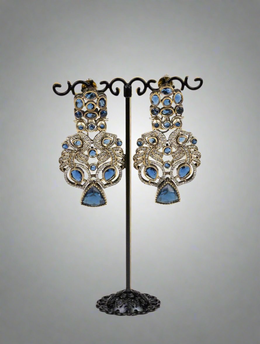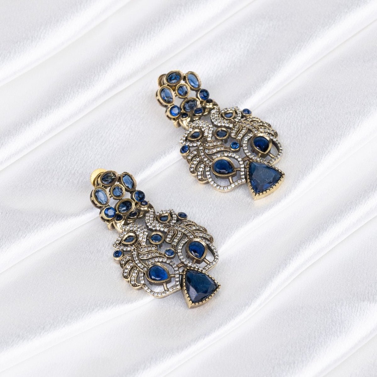Sapphire Plume Cubic Zirconia Earrings – Bold Fashion Elegance - swadeshsouq.com
