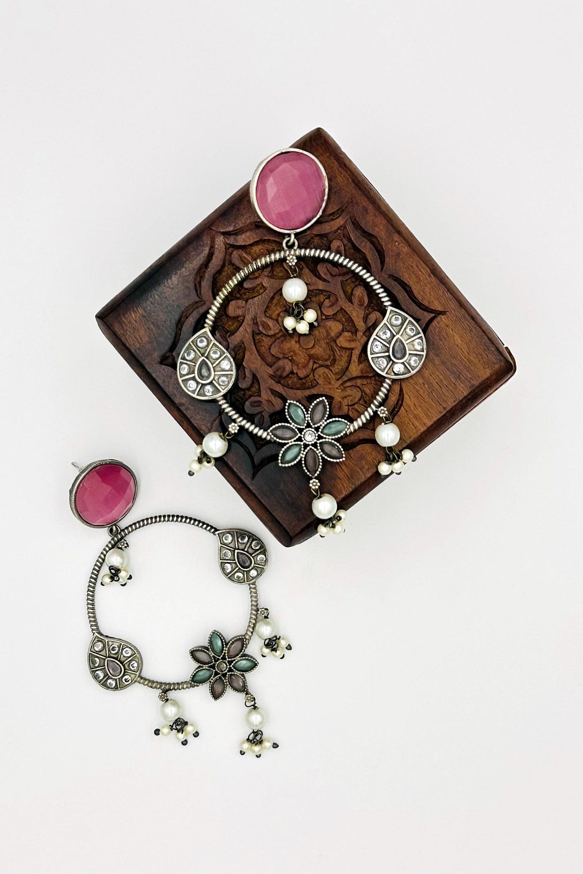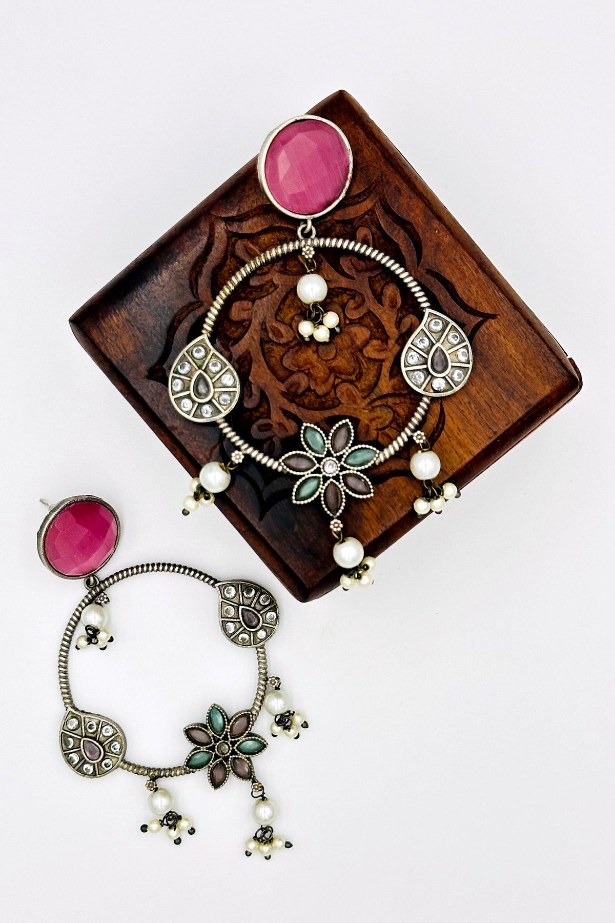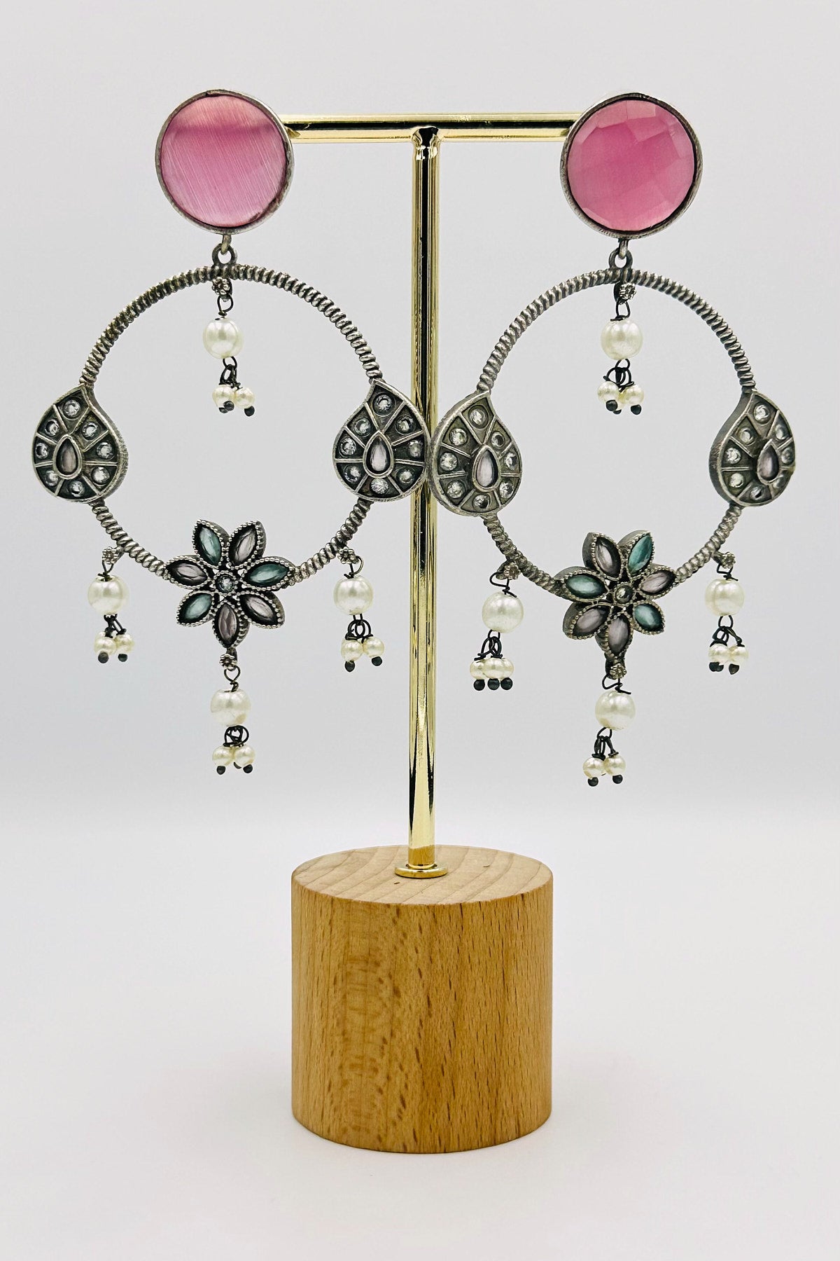 Silver Danglers in Exquisite Floral Design - swadeshsouq.com