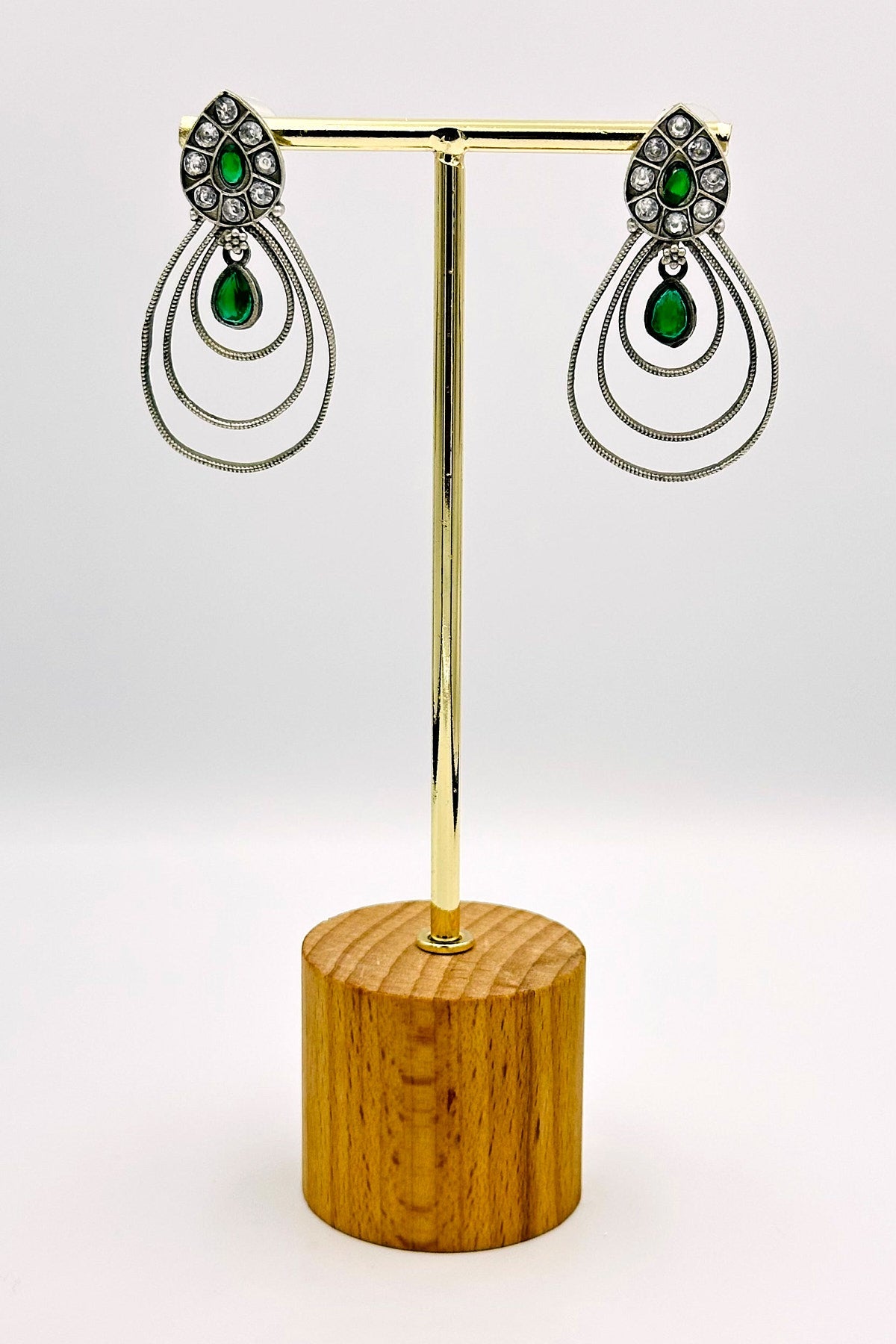 Silver Earrings Adorned with Beautiful Green Stones - swadeshsouq.com