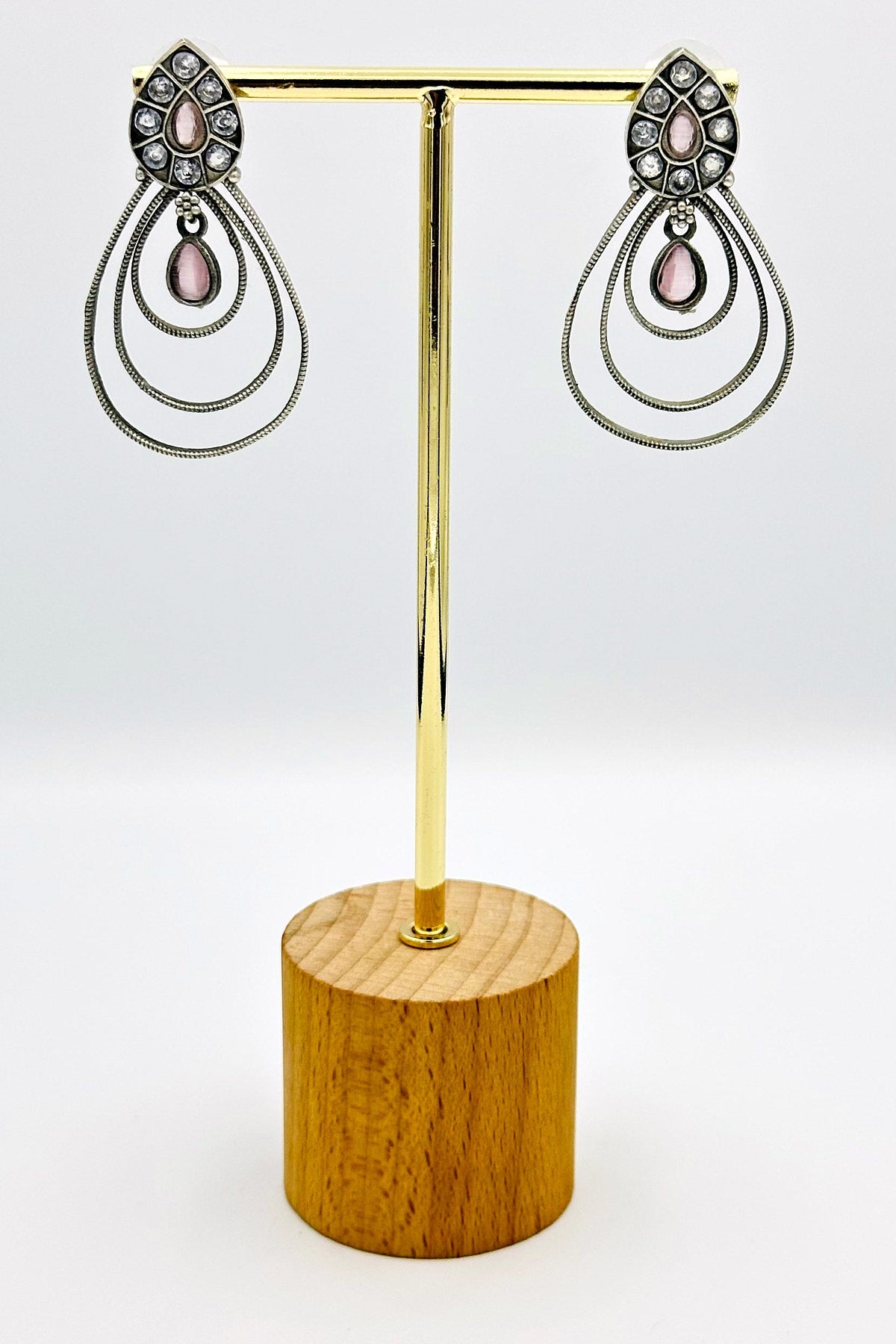 Silver Earrings Adorned with Delicate Pink Stones - swadeshsouq.com