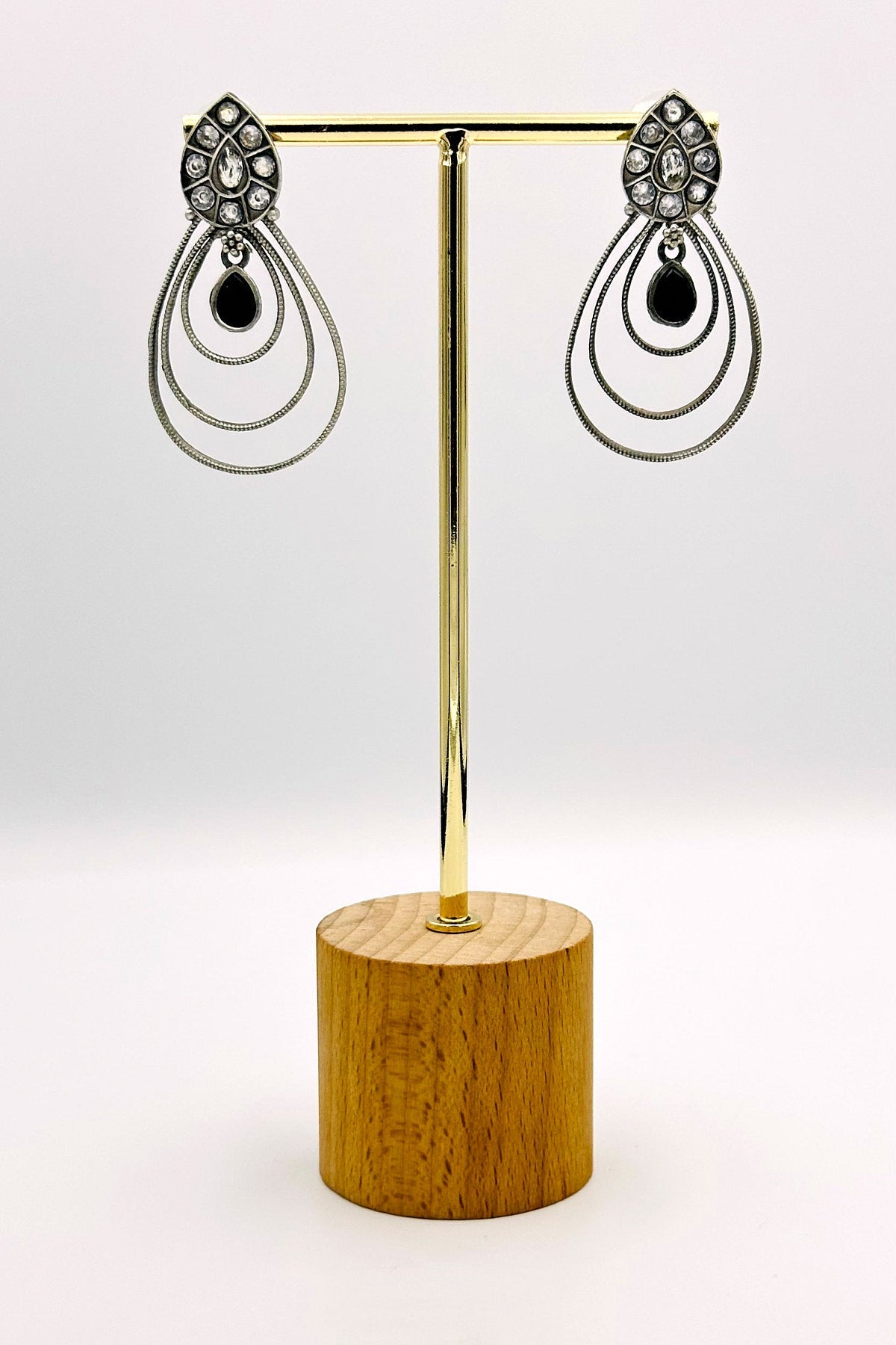 Silver Earrings Adorned with Striking Black Stones - swadeshsouq.com