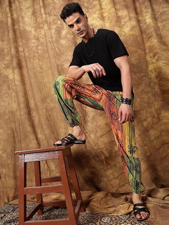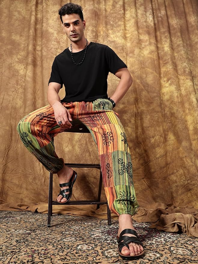 One Size Men's Patchwork Yoga Boho Harem Pants | Fits Waist Size 28 to 36 Inches - swadeshsouq.com