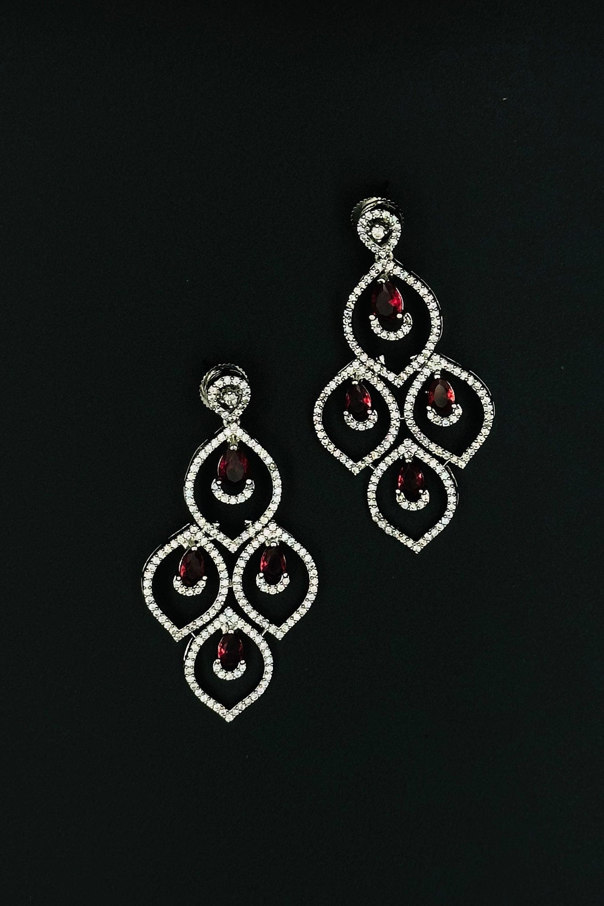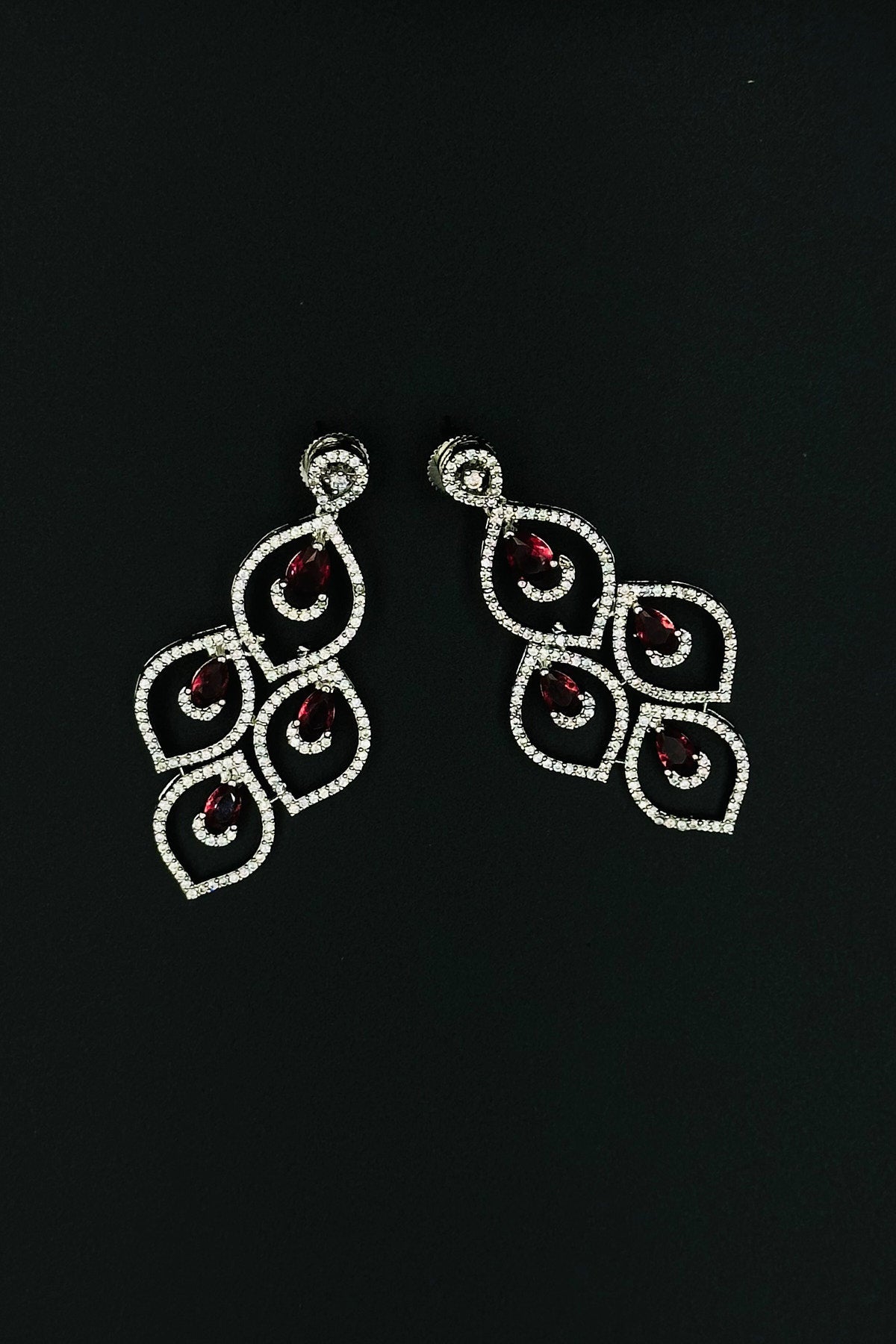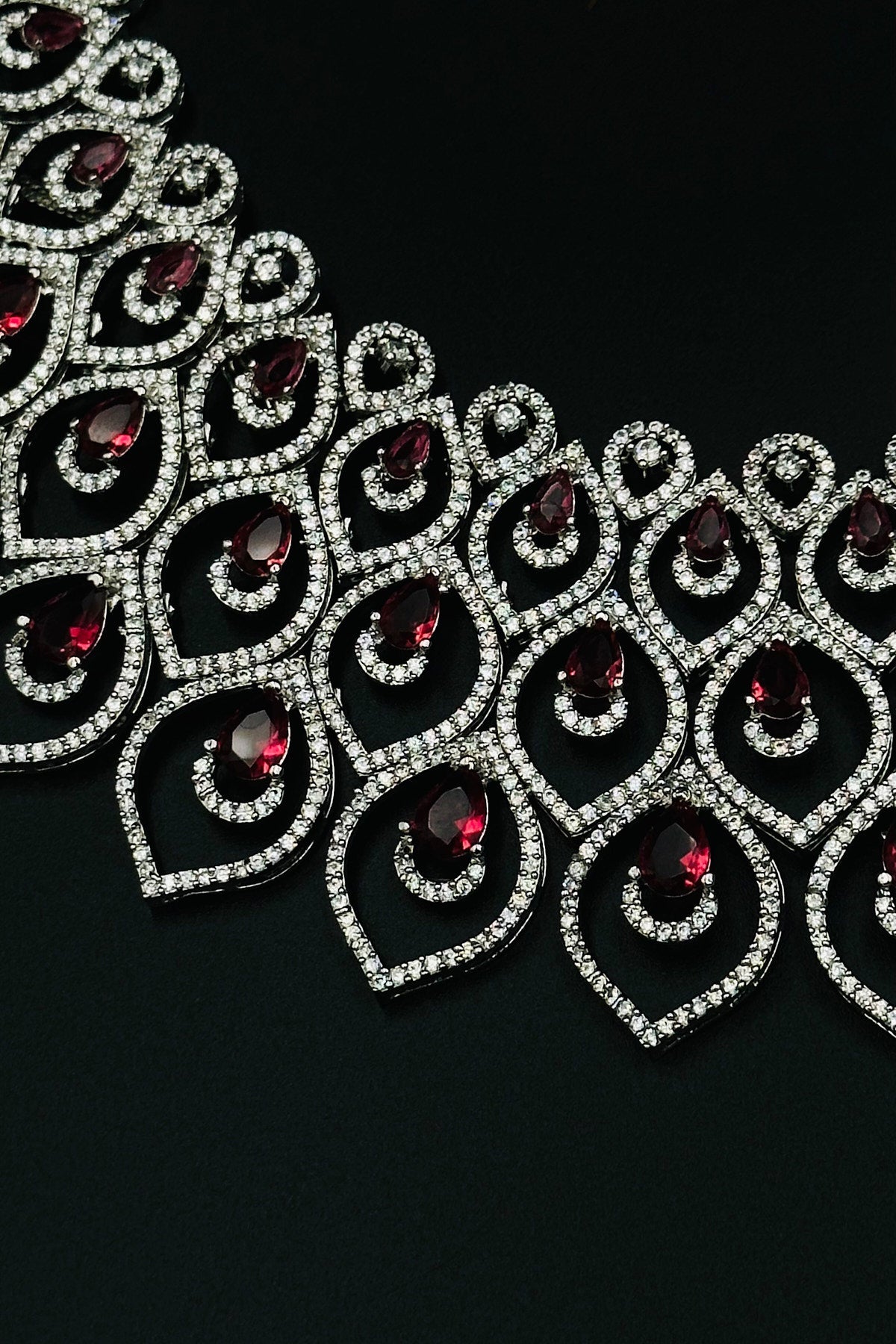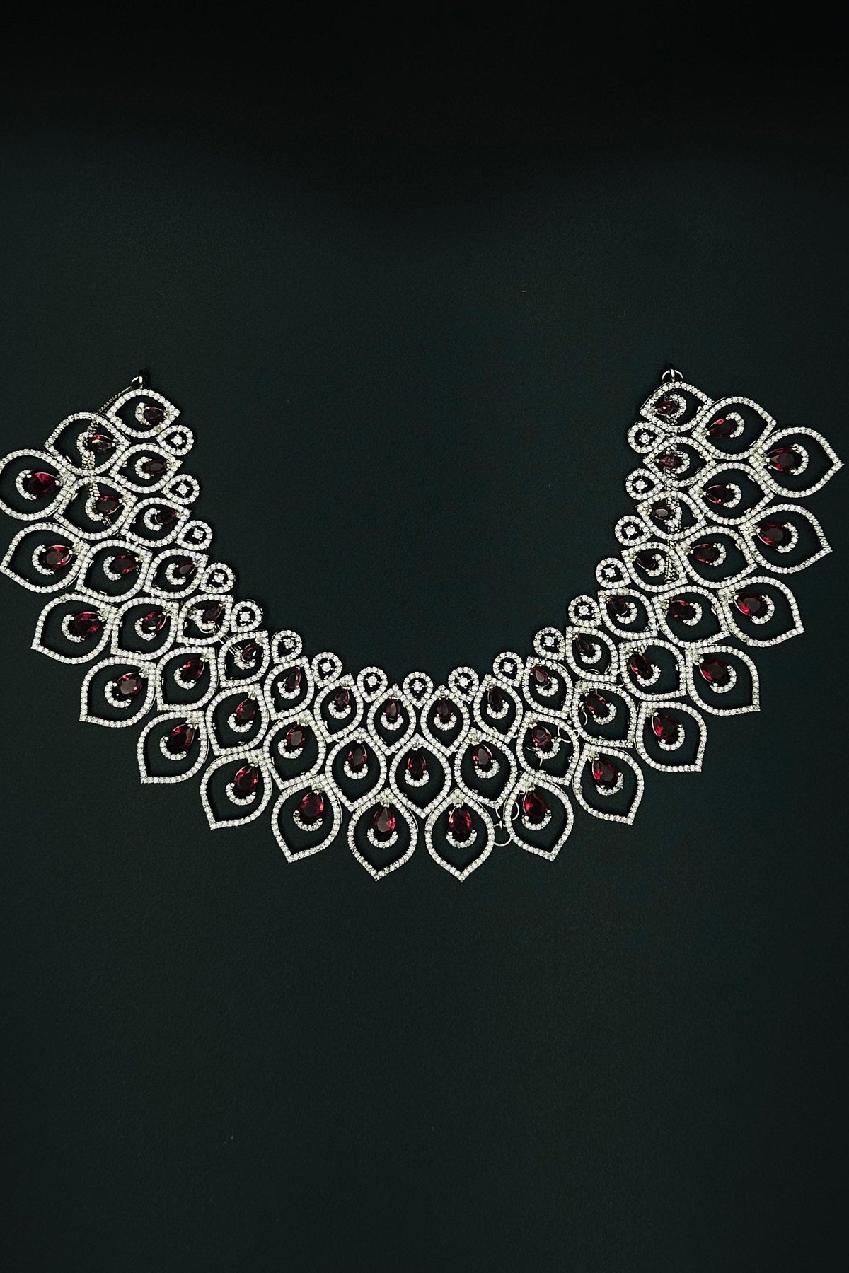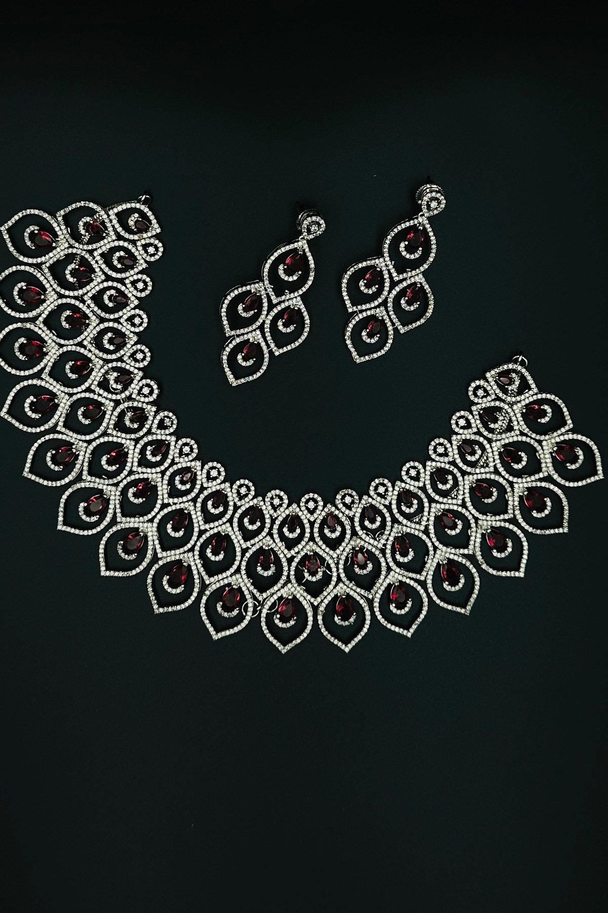 Glimmering Red - CZ Necklace and Earring Set with Ruby Accents. - swadeshsouq.com