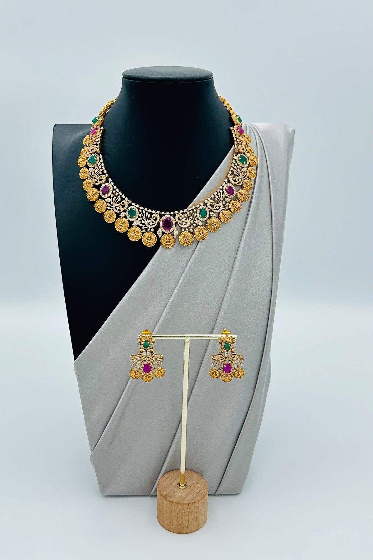 High-Gold Kaasu Ensemble with CZ Brilliance Neckalce - swadeshsouq.com