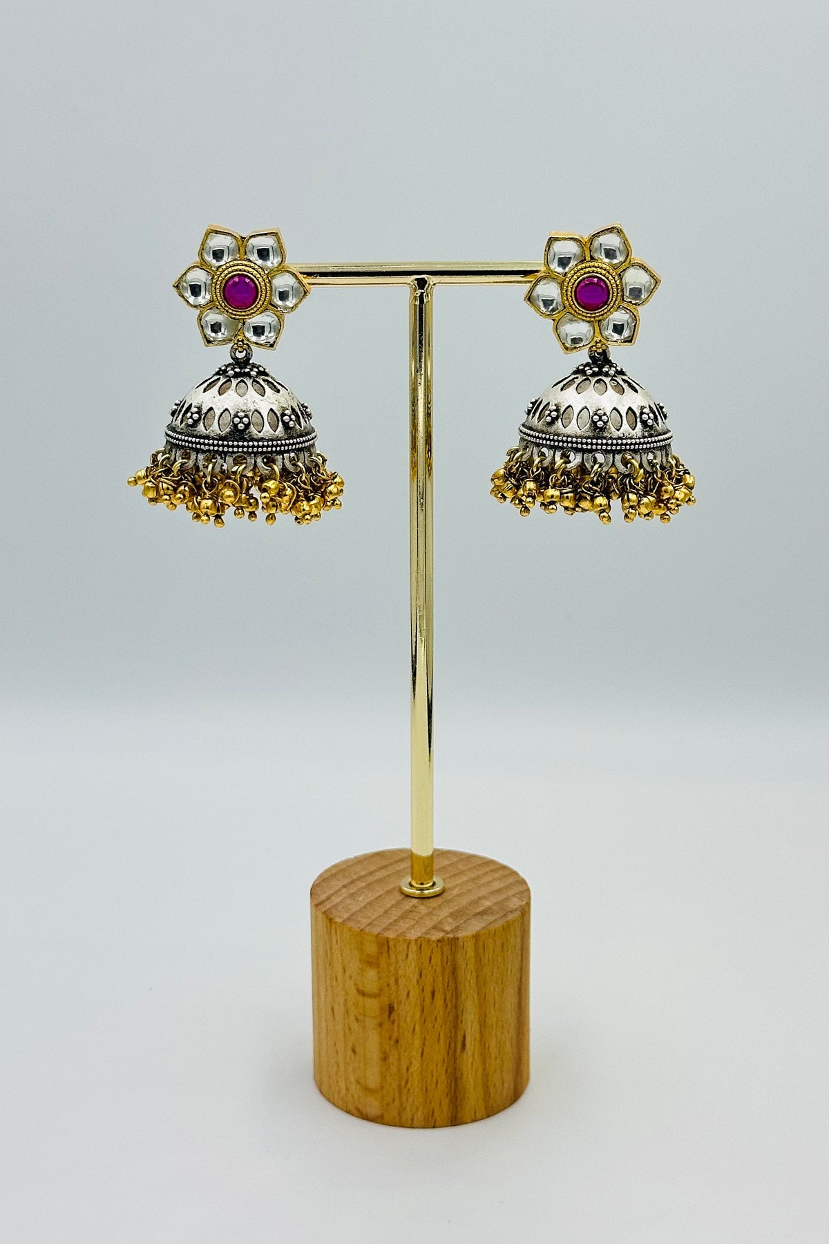 Oxidised Silver Necklace Set with Jadau Stone and Kundans