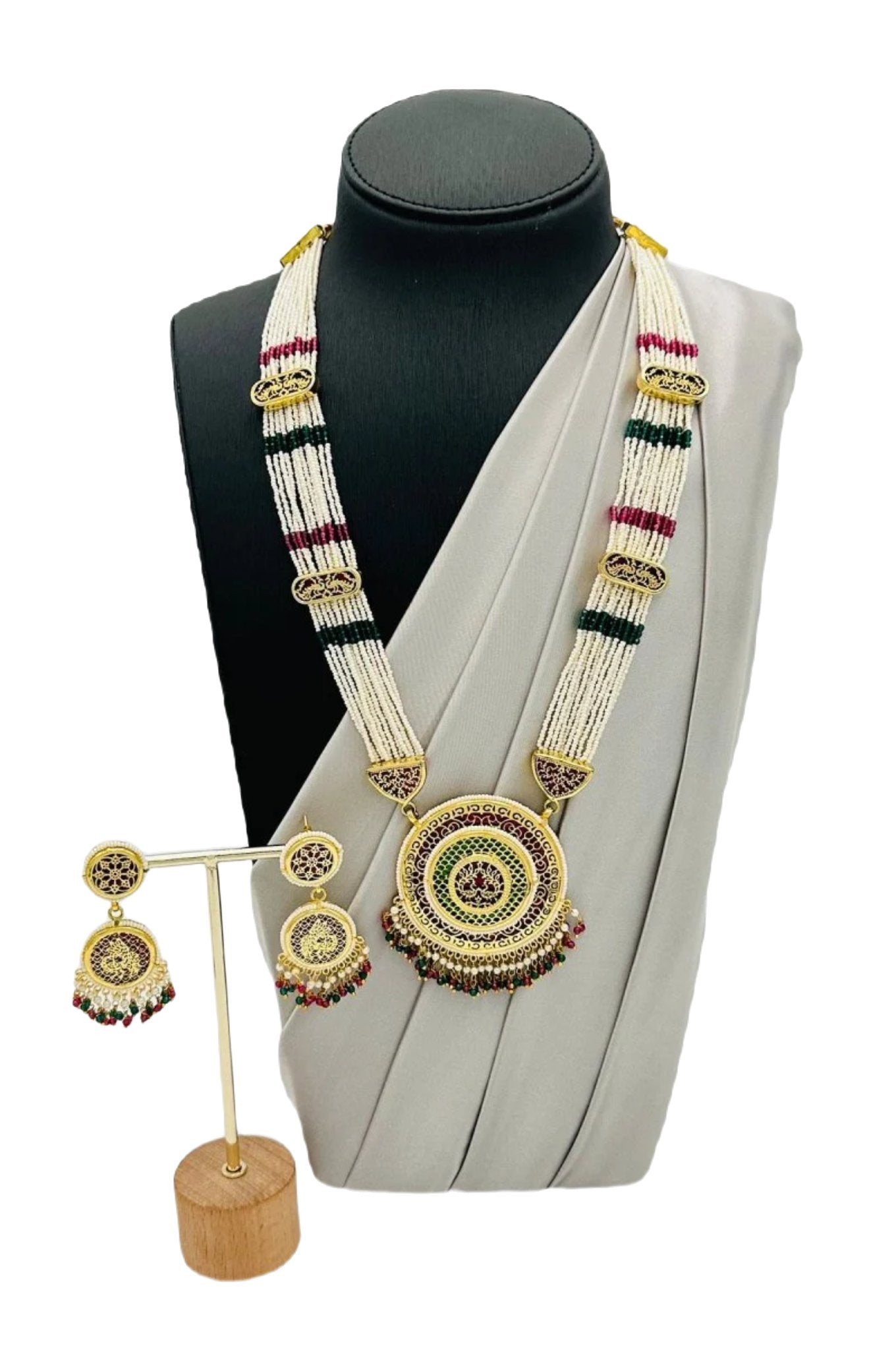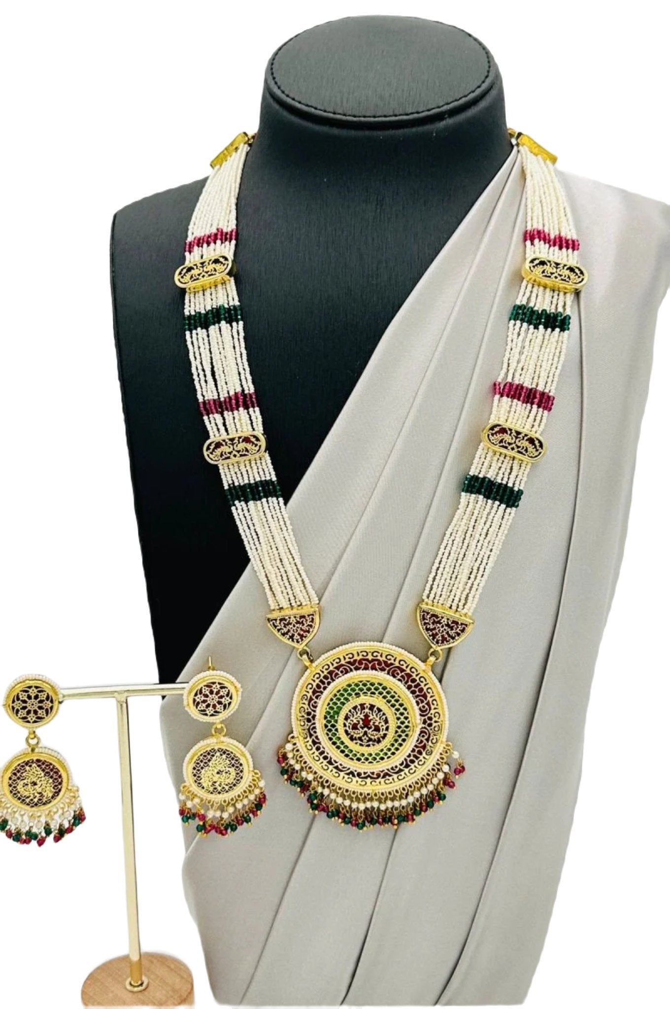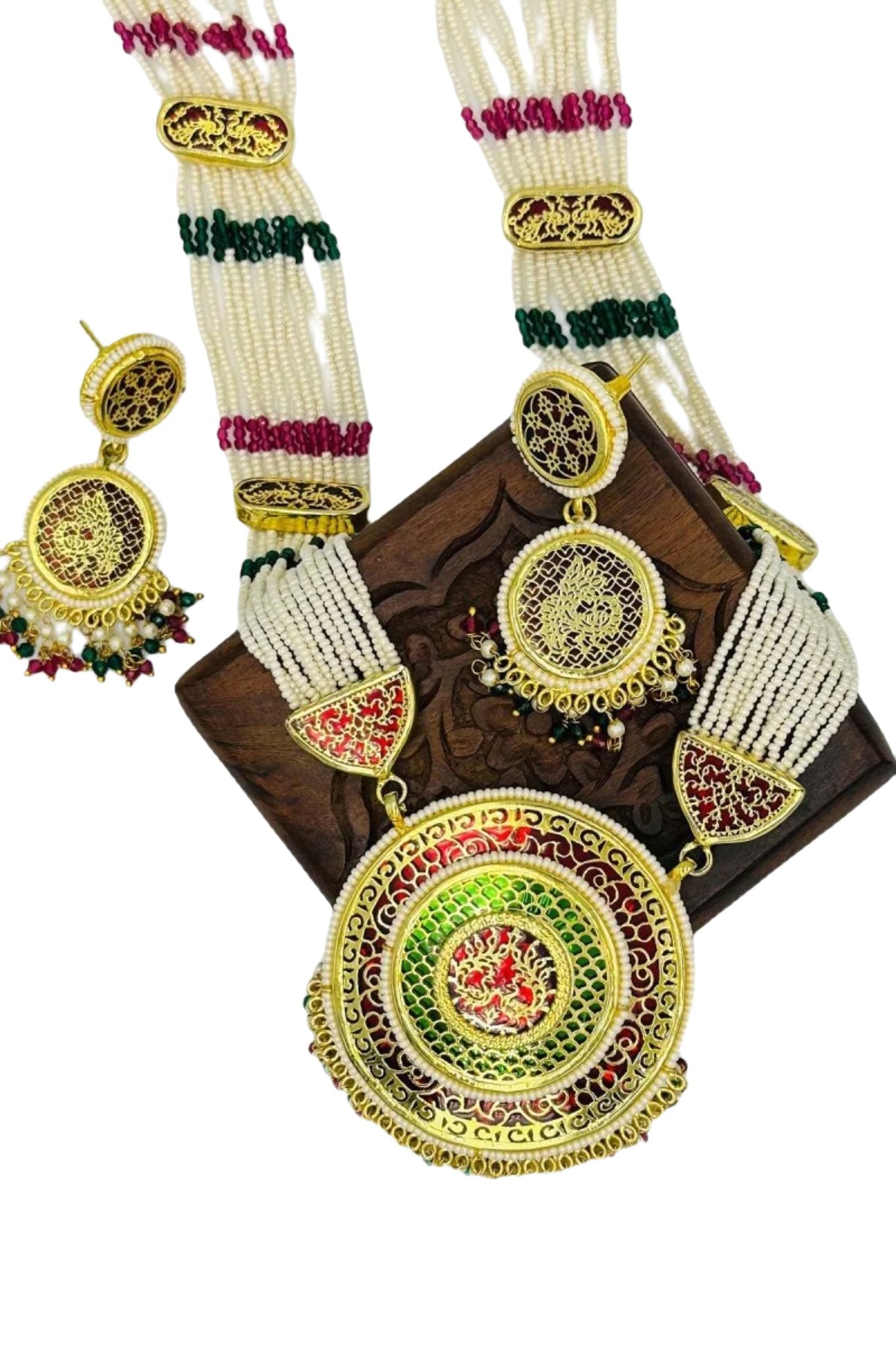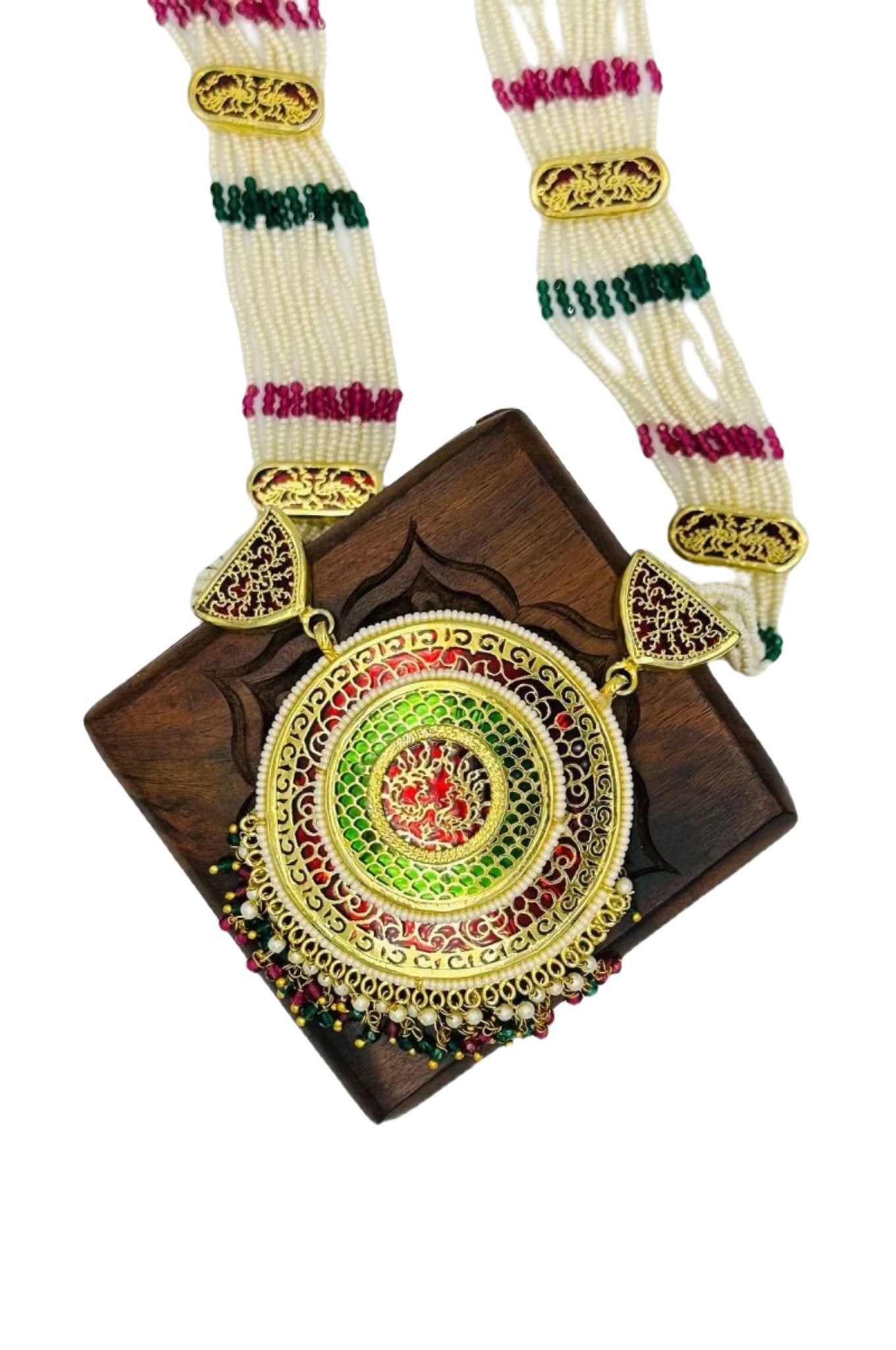 Stunning Sugar Beads Set with Ruby and Emerald Meenakari Pendant - swadeshsouq.com