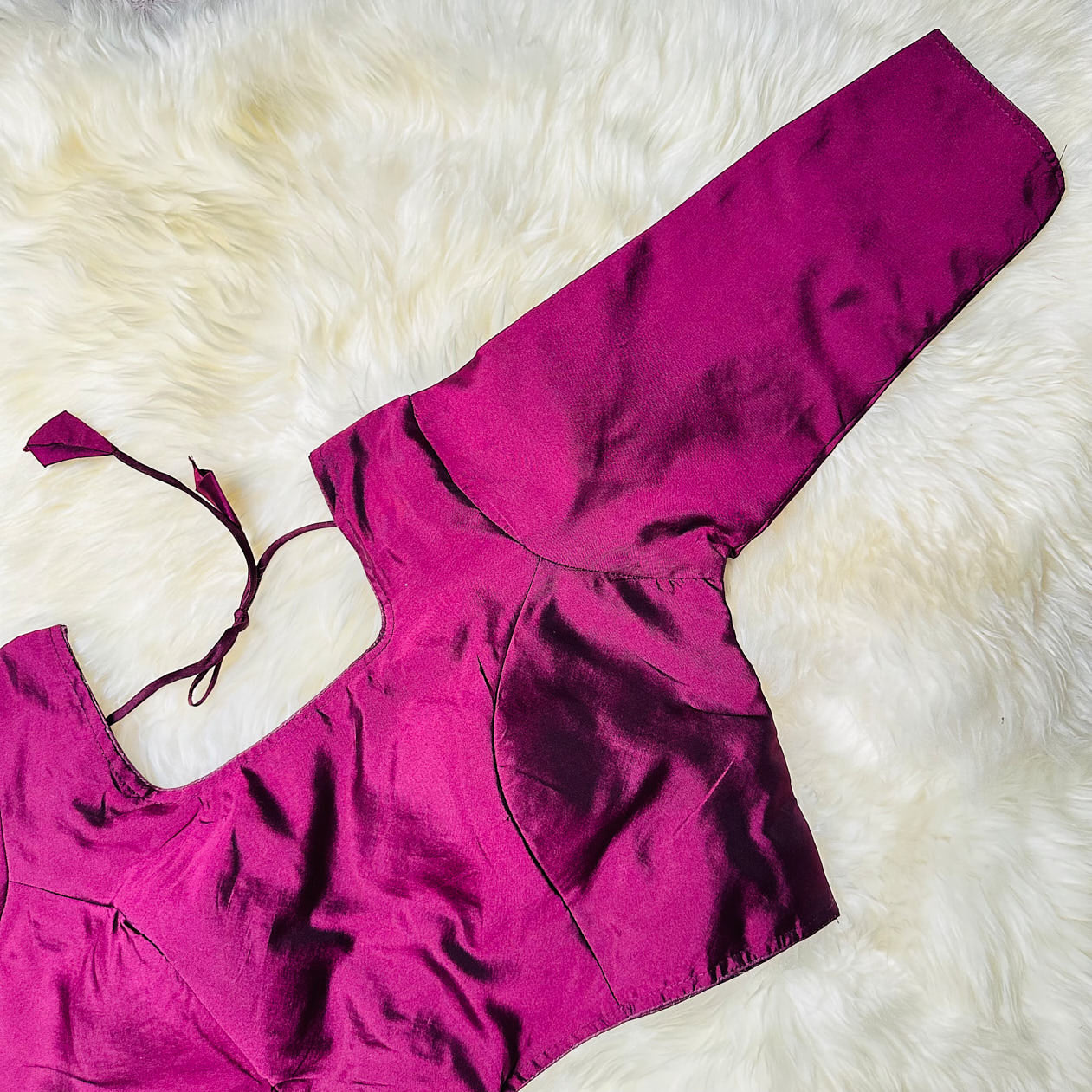 wine colour Silk Long-Sleeve Blouse – Perfect Fit (32 to 38) – Romantic & Graceful