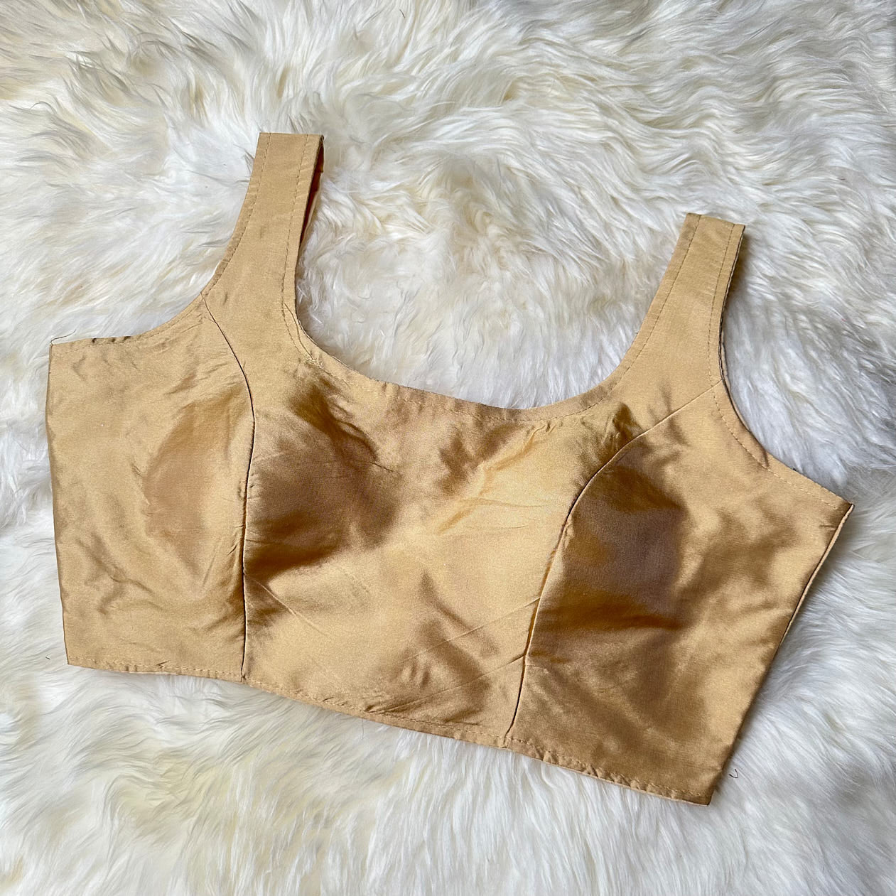 Golden Beige Plain Silk Blouse with Sleeves – Fits 32 to 38 - swadeshsouq.com