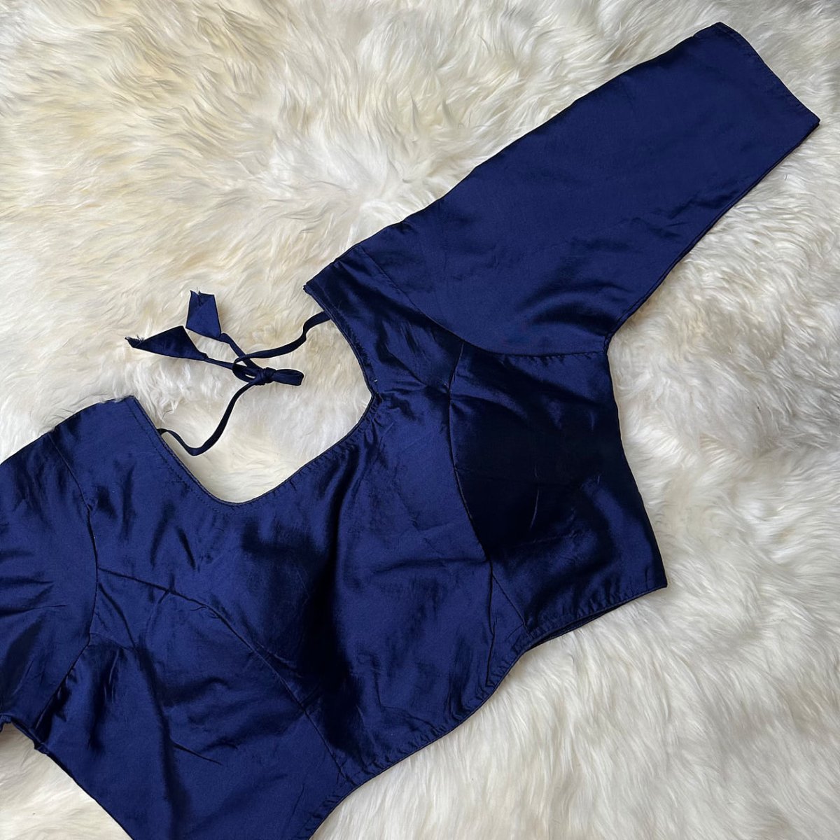 Majestic Blue Silk Long - Sleeve Blouse – Perfect Fit (32 to 38) – Elegant & Rich - swadeshsouq.com