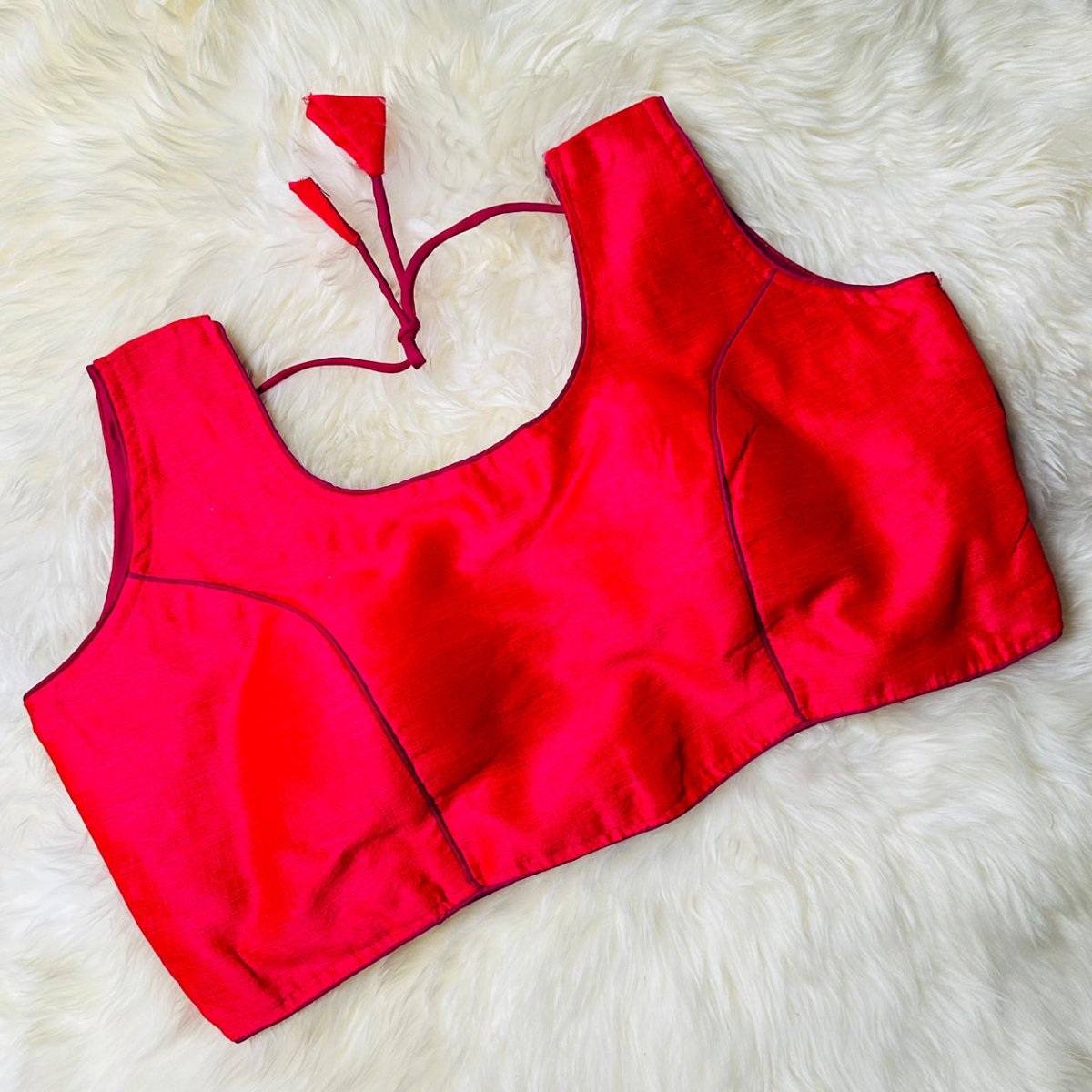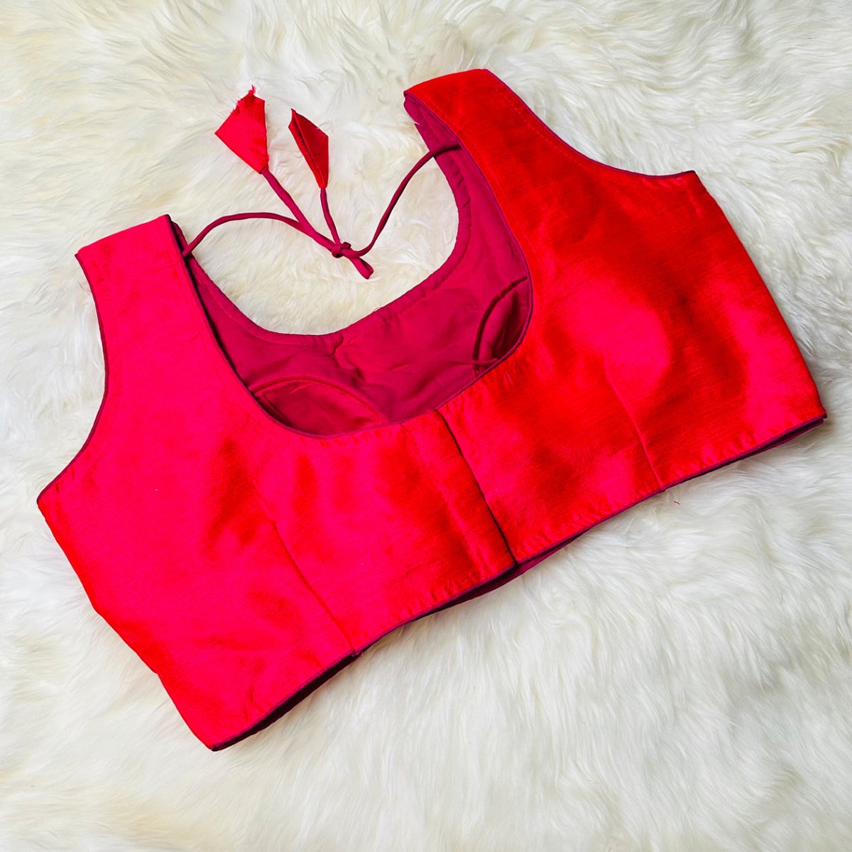Exude grace in this Blush Pink Silk Blouse, tailored for plus sizes 38 to 44. Its soft silk fabric offers a gentle sheen and smooth finish, while the delicate pink hue brings a feminine charm to your ethnic look. Perfect for pairing with both bright and pastel sarees.