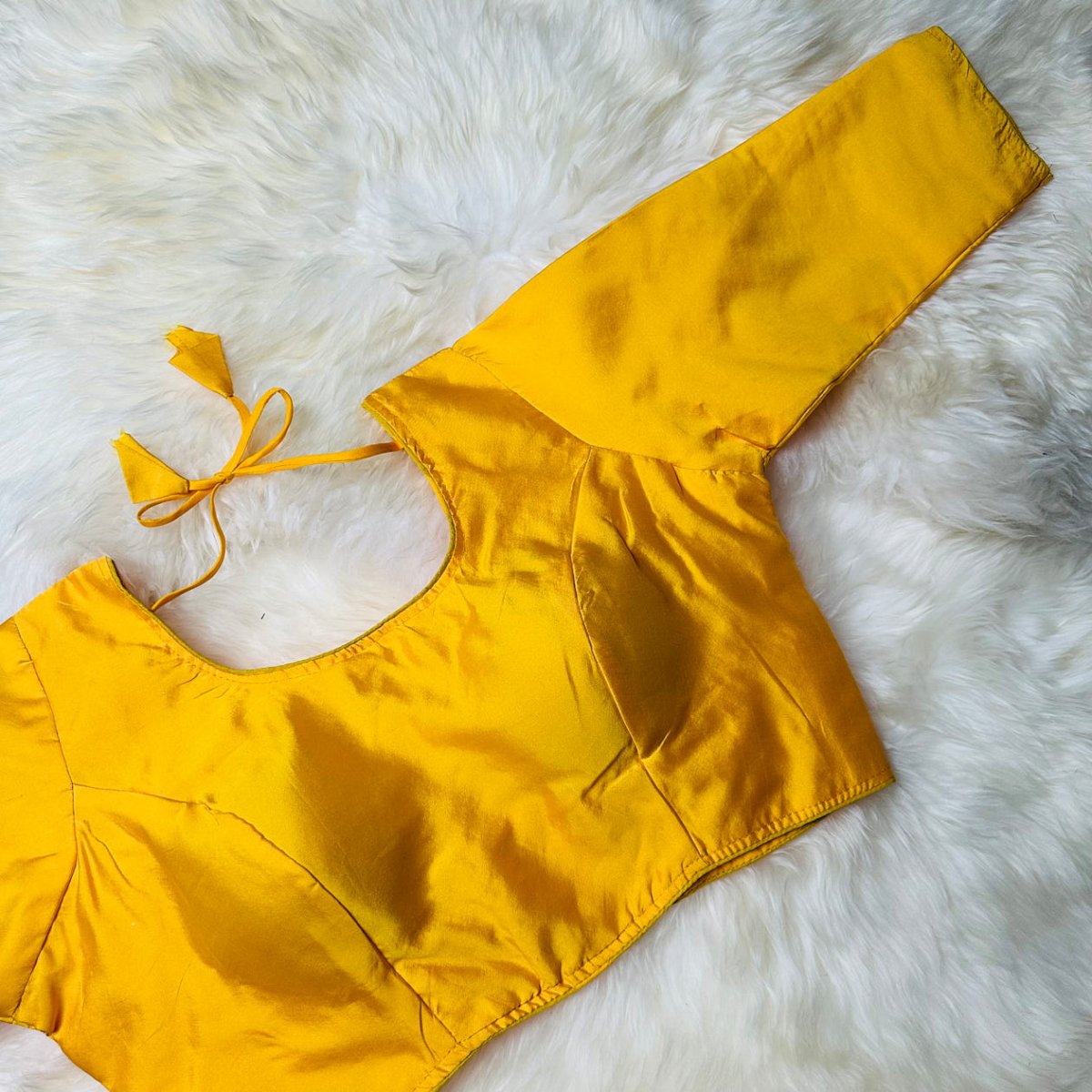 Radiant Yellow Silk Long - Sleeve Blouse – Perfect Fit (32 to 38) – Bright & Joyful - swadeshsouq.com