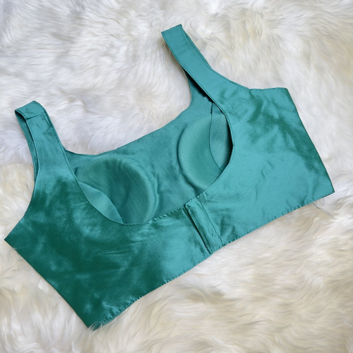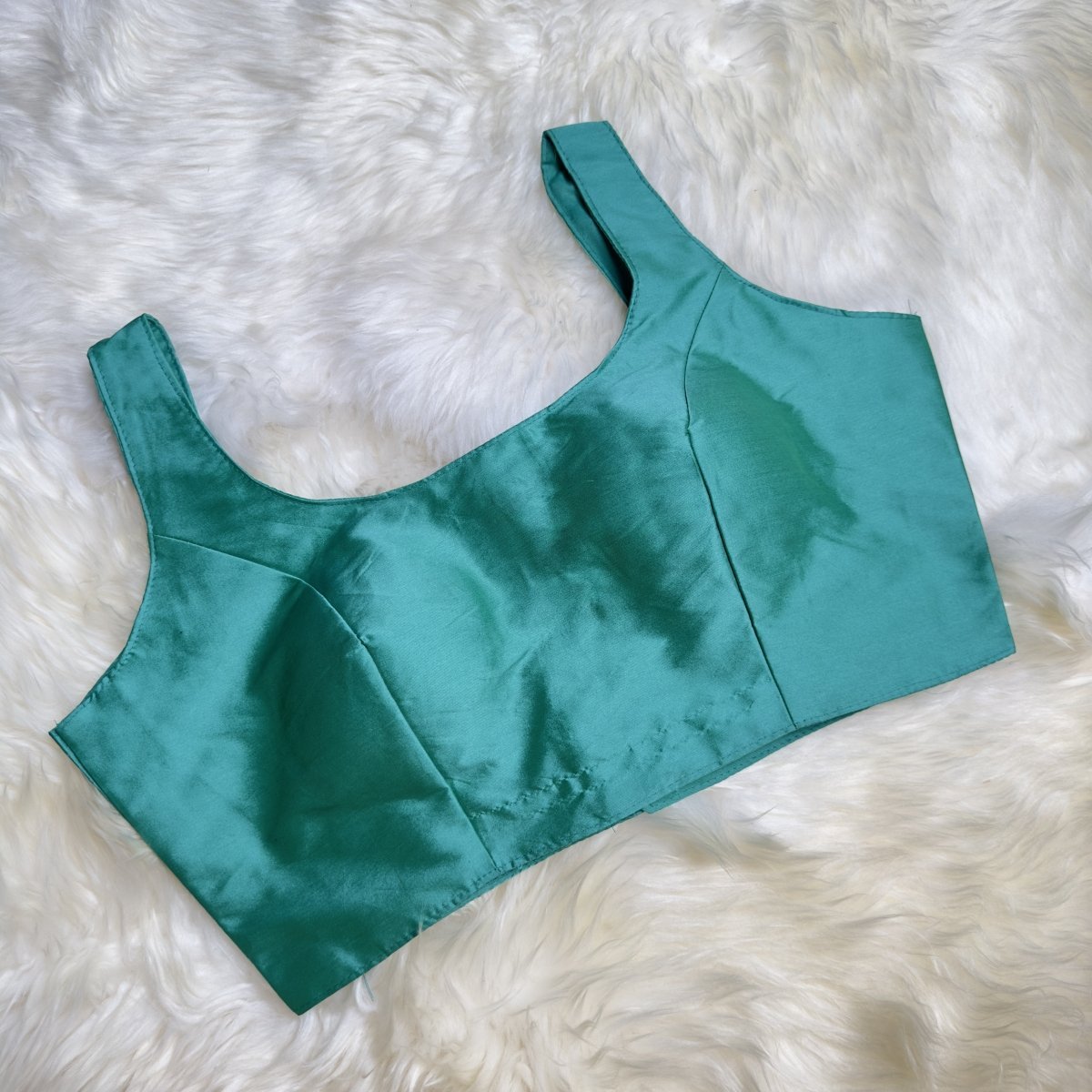 Make a statement with this elegant turquoise green silk blouse, designed to bring a touch of sophistication to your ethnic wardrobe. The captivating teal shade adds a fresh and modern appeal, while the luxurious silk fabric offers a smooth sheen that beautifully complements traditional outfits. Perfect for festive occasions, weddings, or cultural celebrations, this blouse pairs seamlessly with sarees, lehengas, or skirts, adding an element of grace to your ensemble. Elevate your style with this exquisite piece that reflects both tradition and contemporary fashion.