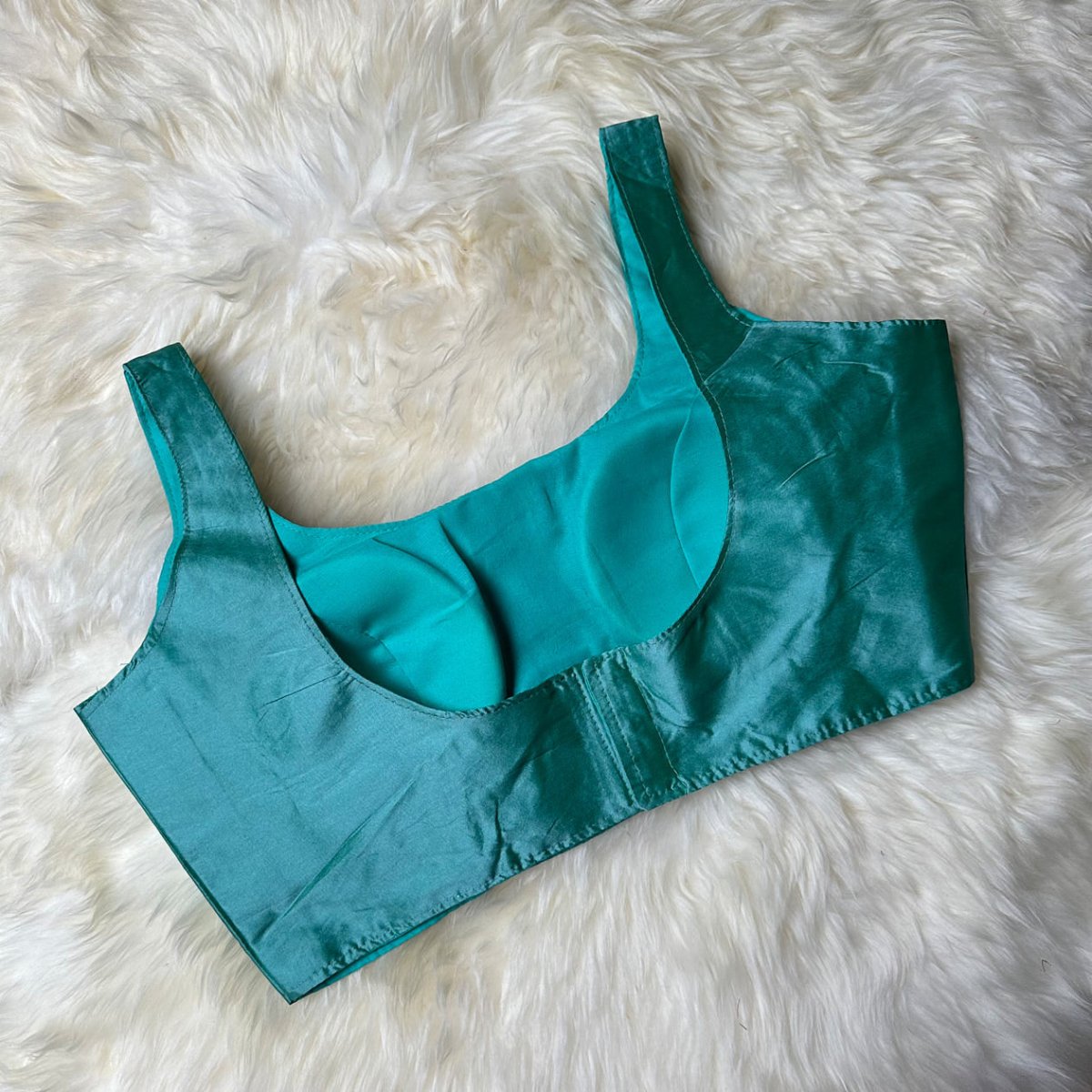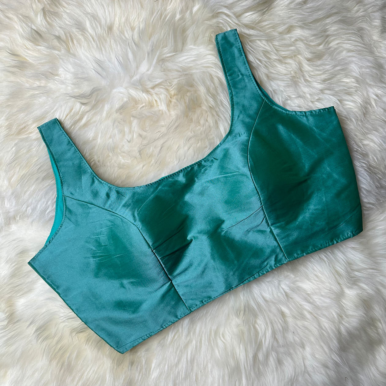 Turquoise Plain Silk Blouse with Sleeves – Fits 32 to 38 - swadeshsouq.com
