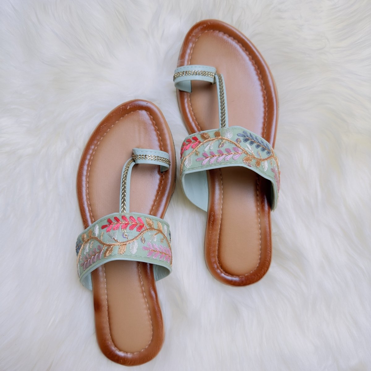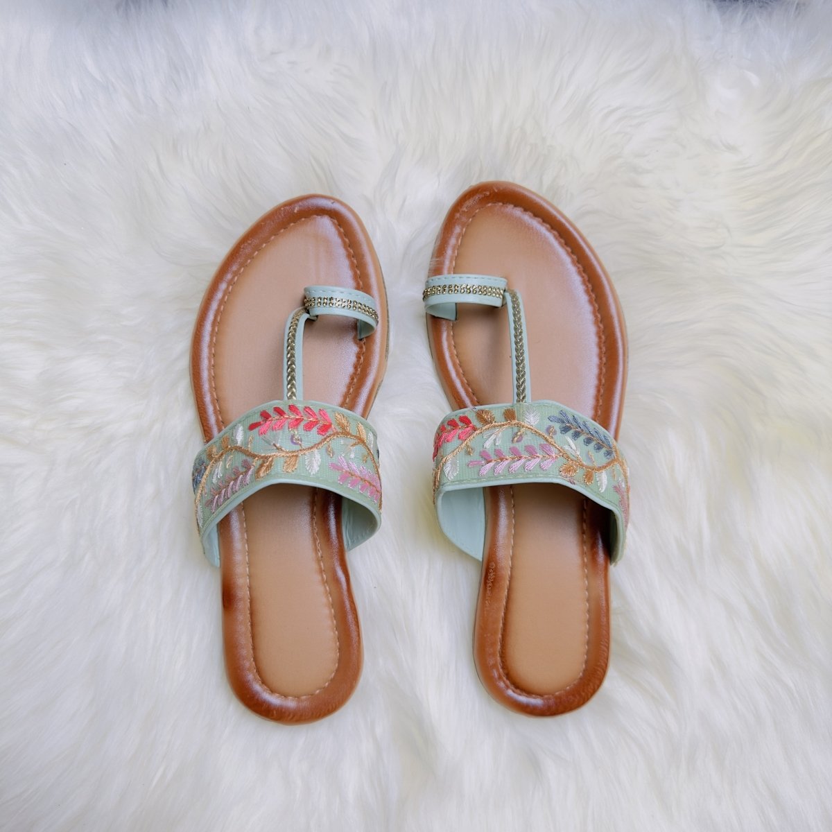 Step out in style with these beautiful pastel hand-embroidered sandals, featuring delicate floral patterns that exude elegance and charm. The intricate embroidery adds a touch of artistry, while the soft pastel hues provide a sophisticated look, perfect for both casual and festive occasions. Crafted with care, these sandals offer a blend of comfort and style, making them an ideal choice for adding a touch of traditional flair to your modern wardrobe. Experience the beauty of handcrafted design with each step.