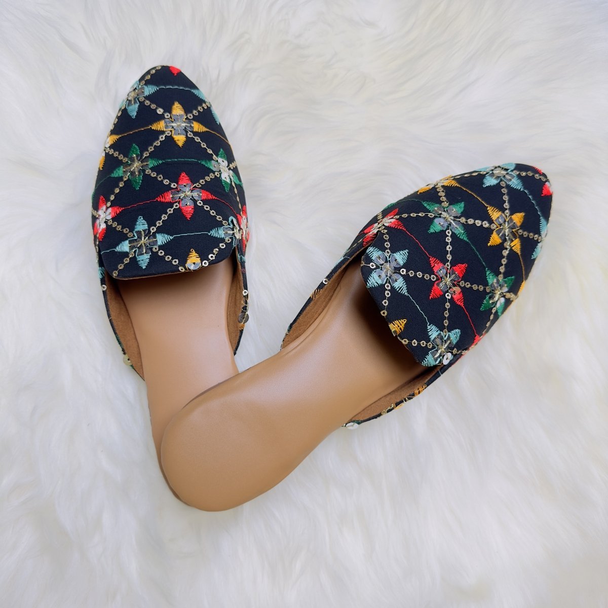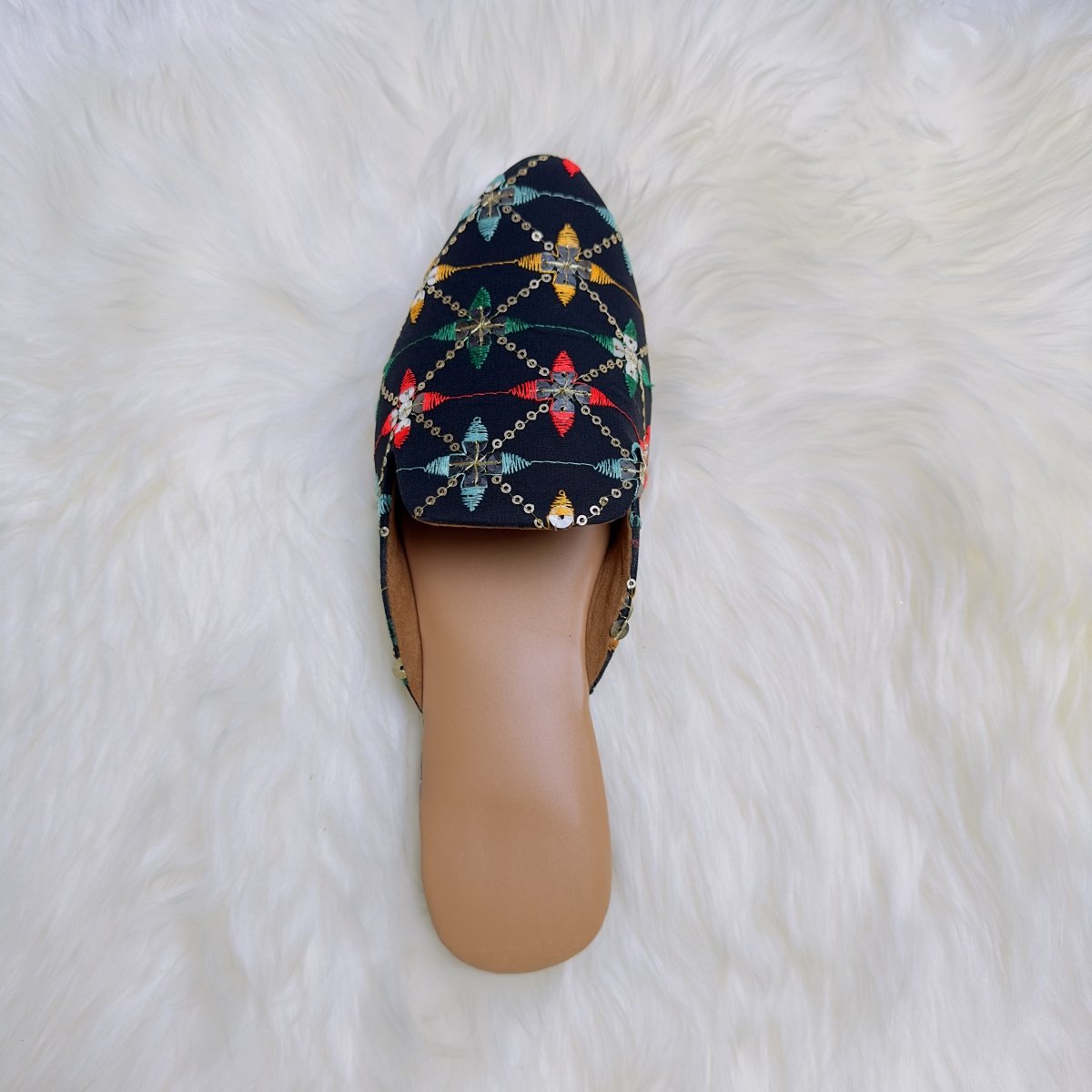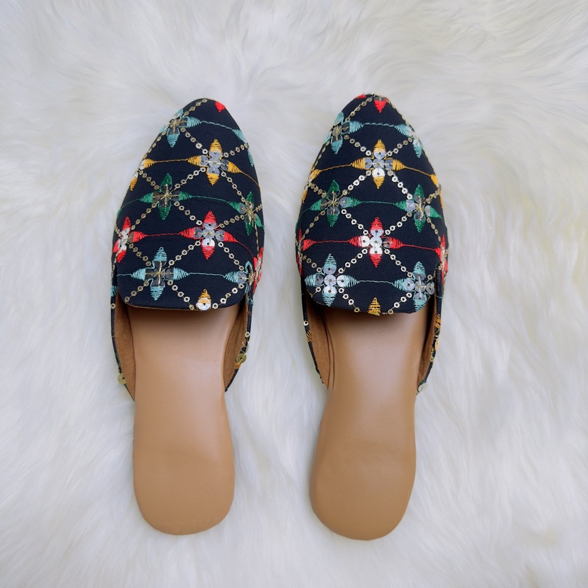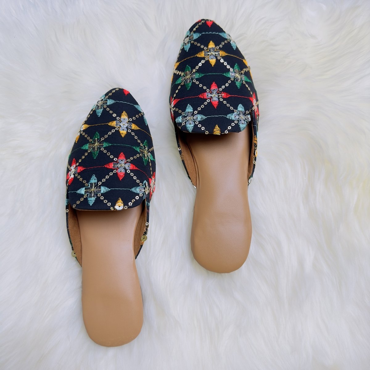 Rajasthani Black Jaipuri Handmade Sandals – Timeless Embroidery and Craftsmanship - swadeshsouq.com