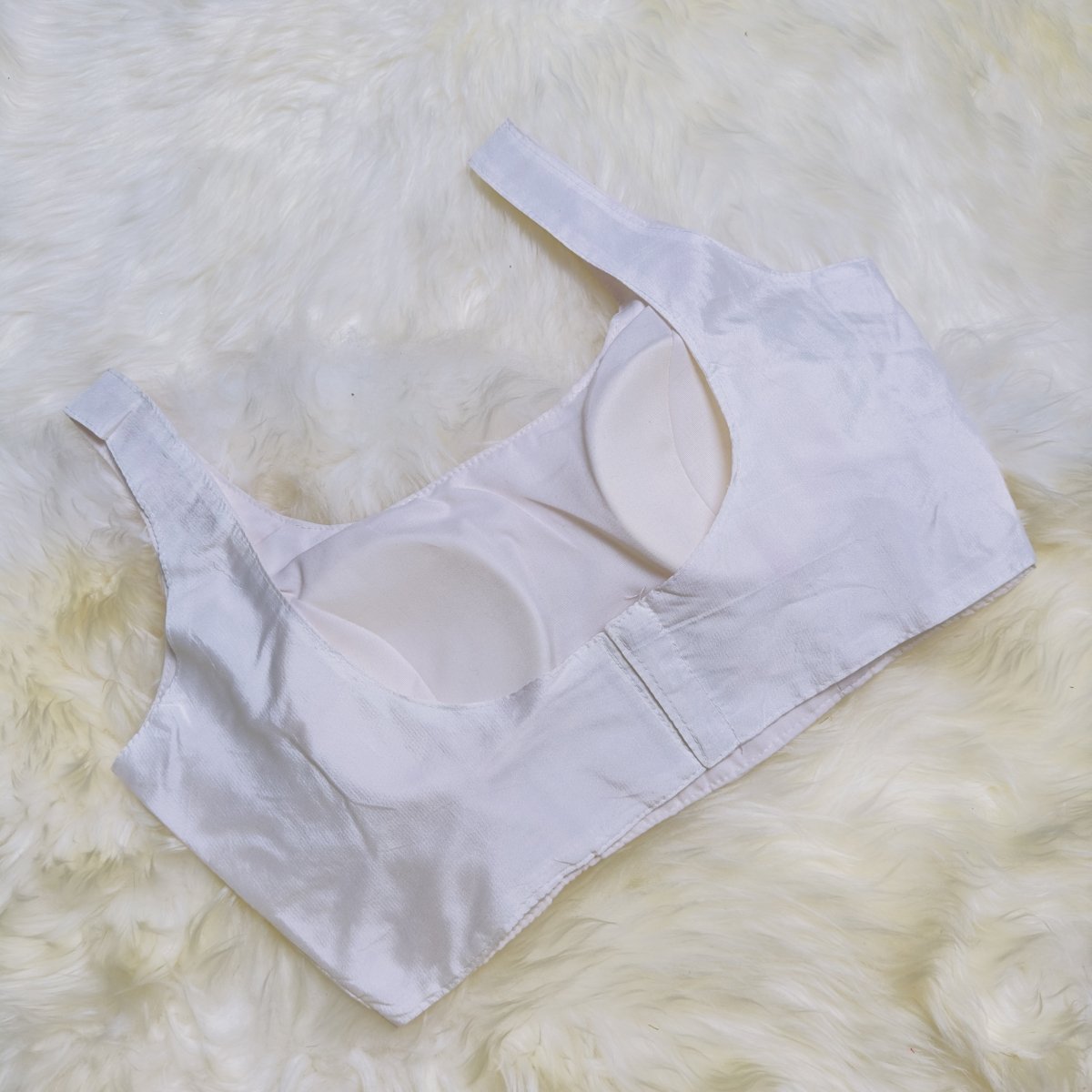 Elevate your ethnic ensemble with this versatile white silk blouse. Crafted for an elegant appeal, it pairs beautifully with sarees, lehengas, or skirts. This blouse is designed for comfort and style, making it a perfect addition to your traditional wardrobe.