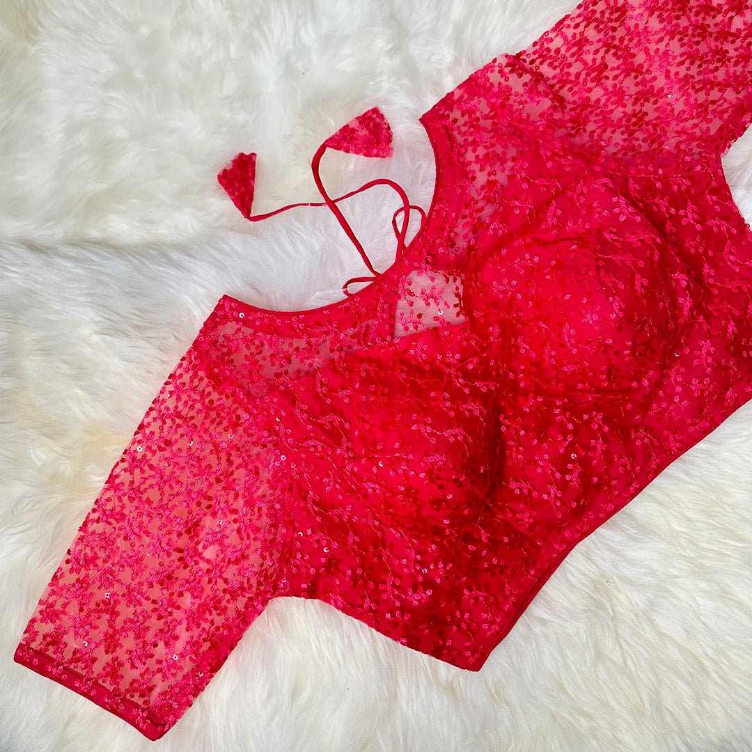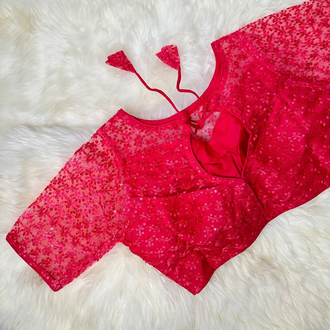 This stunning pink raschel netted blouse is a true showstopper, featuring intricate sequin embellishments that shimmer and sparkle with every movement. The sheer netted fabric creates a delicate and feminine look, while the sequin detailing adds a touch of glamour and sophistication. Whether paired with a flowing skirt or slim-fit trousers, this blouse is perfect for adding a touch of luxury to any outfit. Make a statement and turn heads with this stunning piece that embodies elegance and grace.