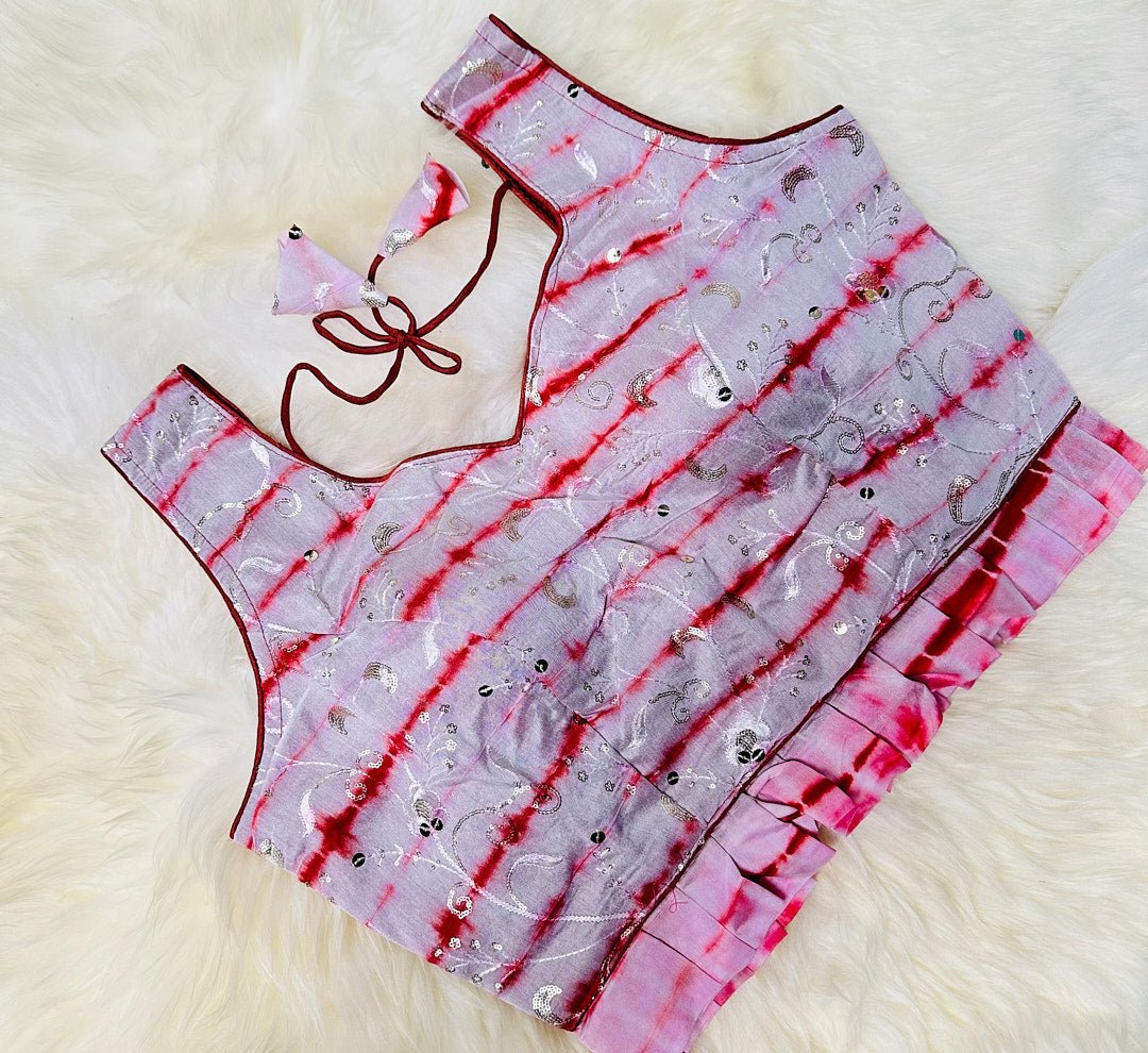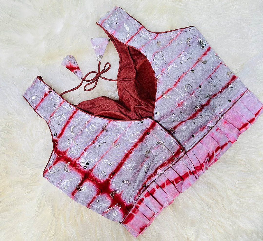 Elevate Your Style with Our Frilled Blouse in Grey and Maroon with Foil Sisha Work