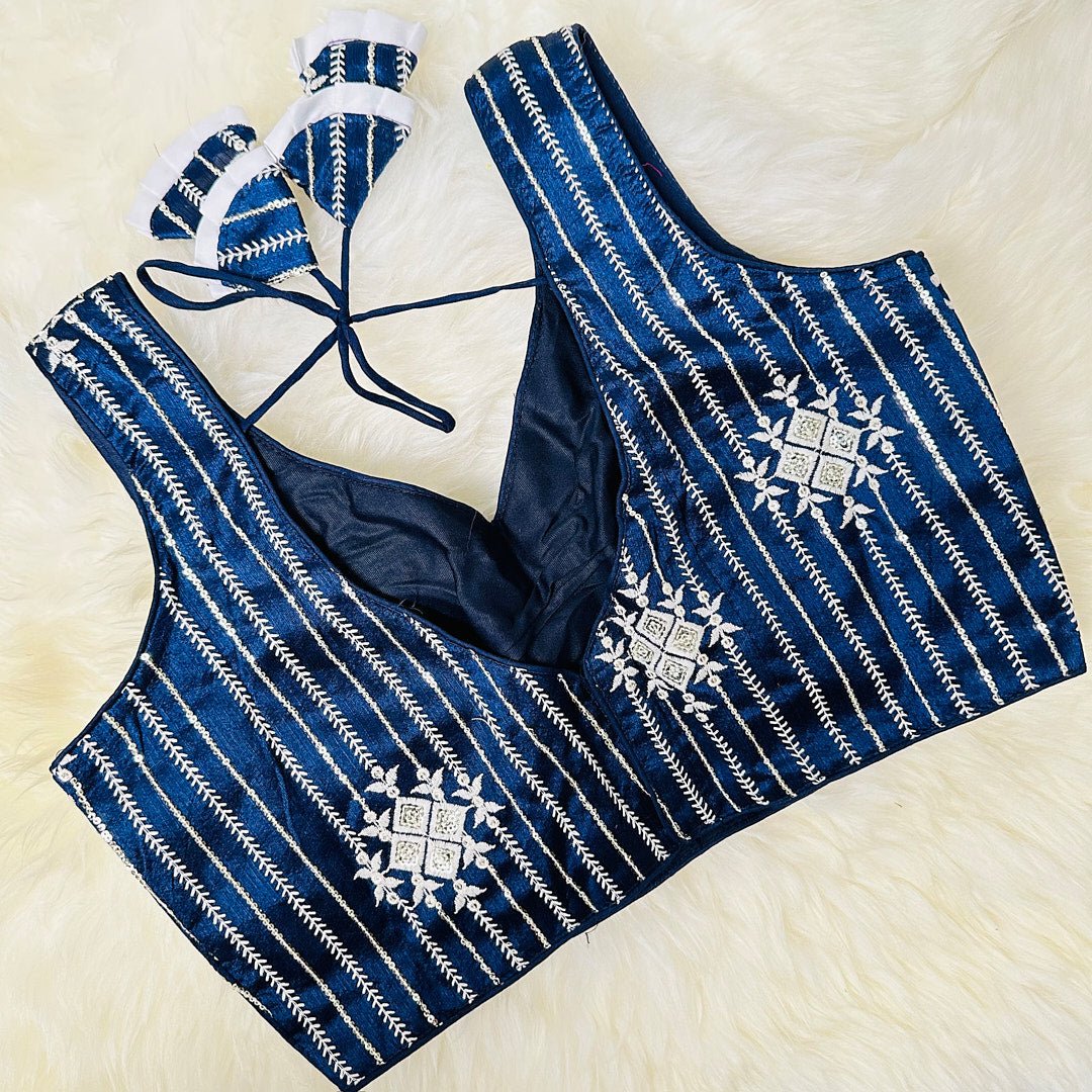 Enchanting Blue Rawsilk Blouse with Exquisite Embroidery.