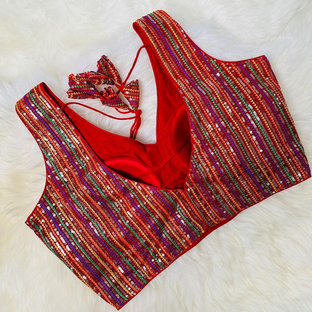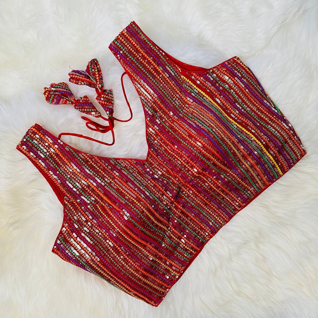 Fiery Red Georgette Blouse with Vibrant Sequin Work.