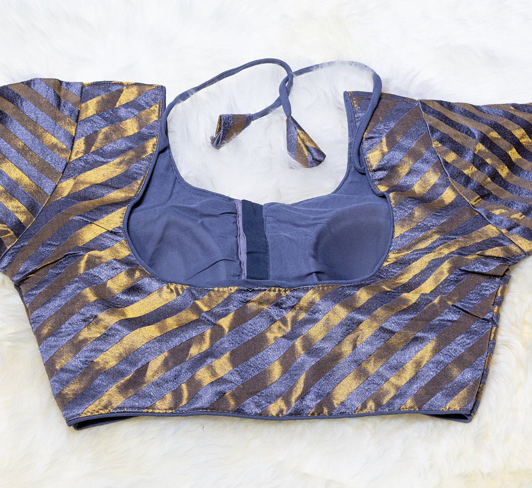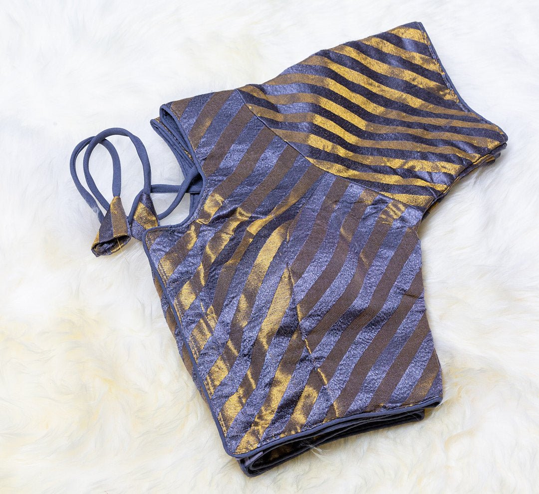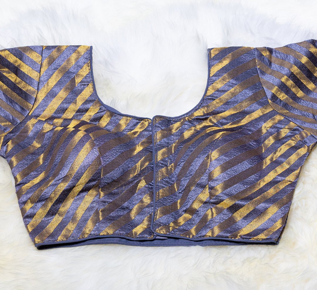 Grey Semi Silk Blouse with Golden Stripes: A Classic and Stylish Addition to Your Wardrobe - swadeshsouq.com