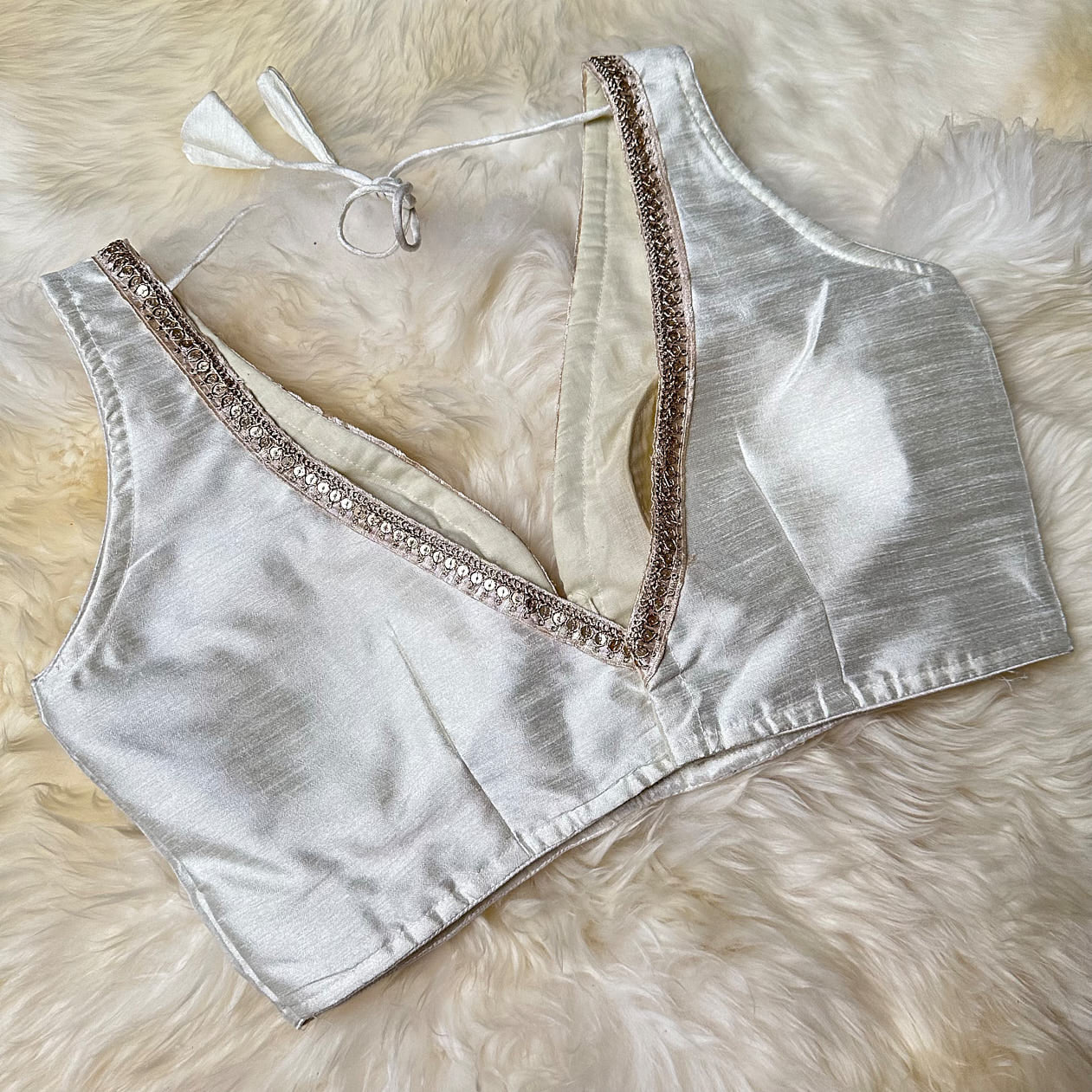 Subtle sophistication meets timeless beauty in this Ivory Silk Blouse. Crafted from rich, premium silk, it features beautiful and minimal embroidery that enhances its classic charm. The soft off-white tone, with its warm ivory undertone, makes it a versatile choice for weddings, festive celebrations, and elegant everyday wear.