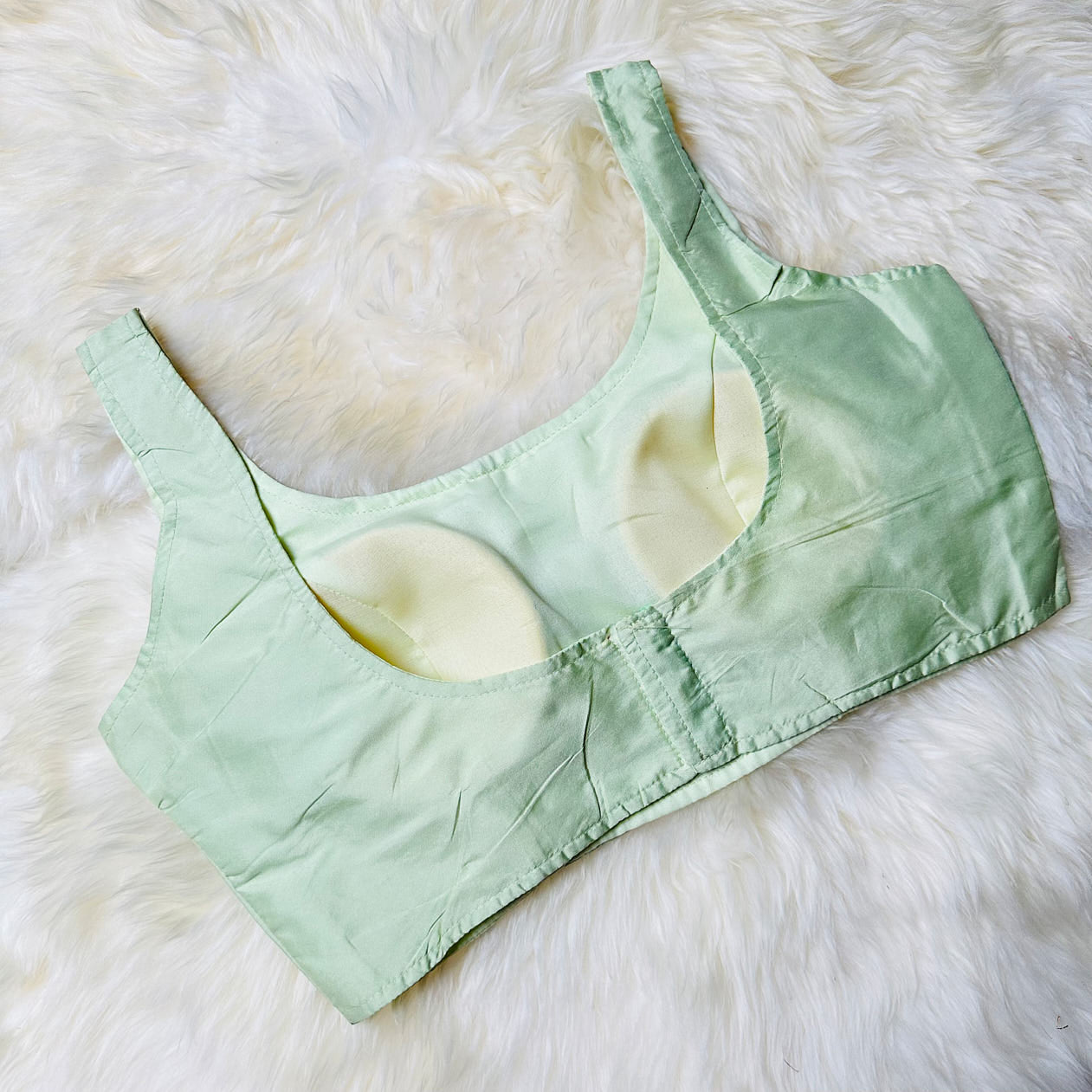 Pastel Green Plain Silk Blouse with Sleeves – Fits 32 to 38