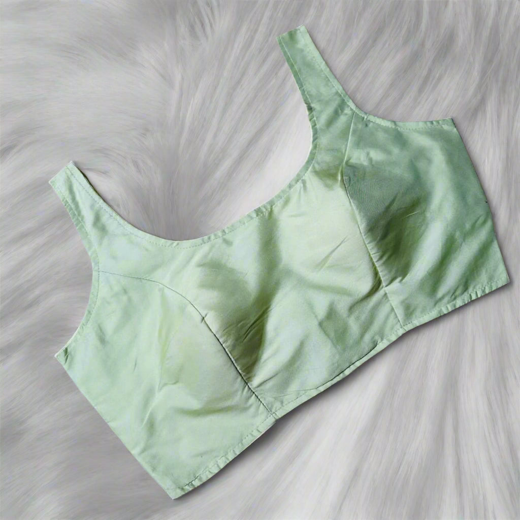 Pastel Green Plain Silk Blouse with Sleeves – Fits 32 to 38 - swadeshsouq.com