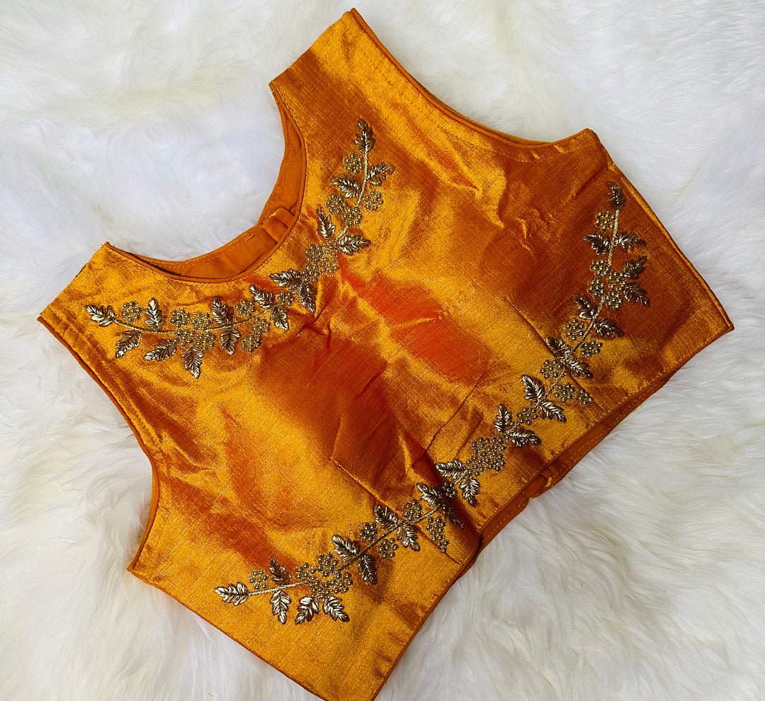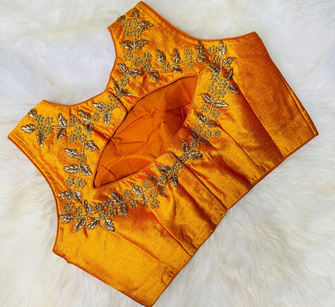 Radiant in Yellow: Embrace the Sunshine with this Raw Silk Blouse Adorned with Golden Zardosi Work