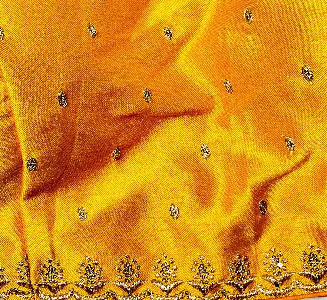Radiant Jaipuri Elegance: Embrace Your Inner Glow with the Yellow Raw Silk Blouse with Golden Buttis. - swadeshsouq.com