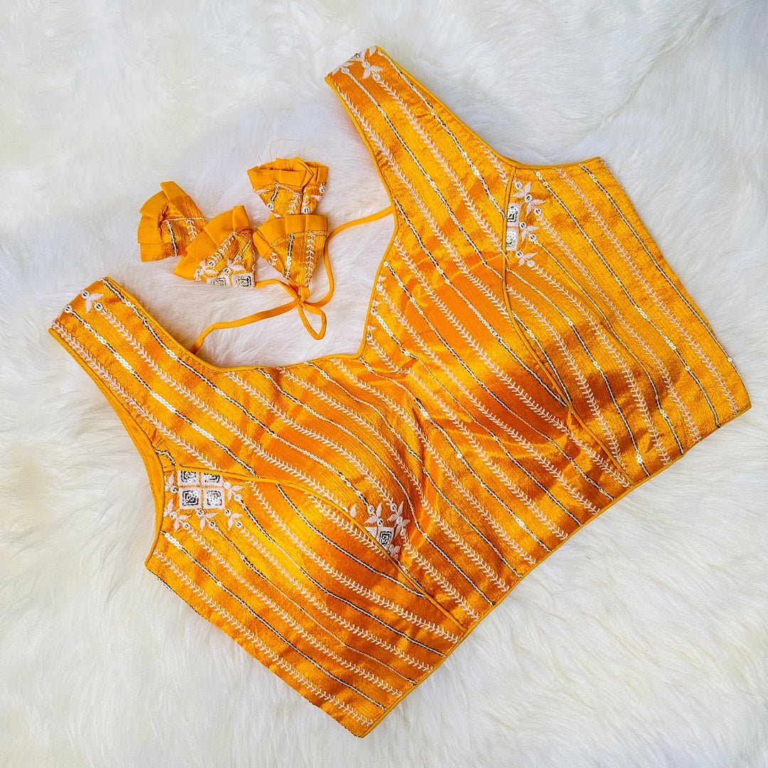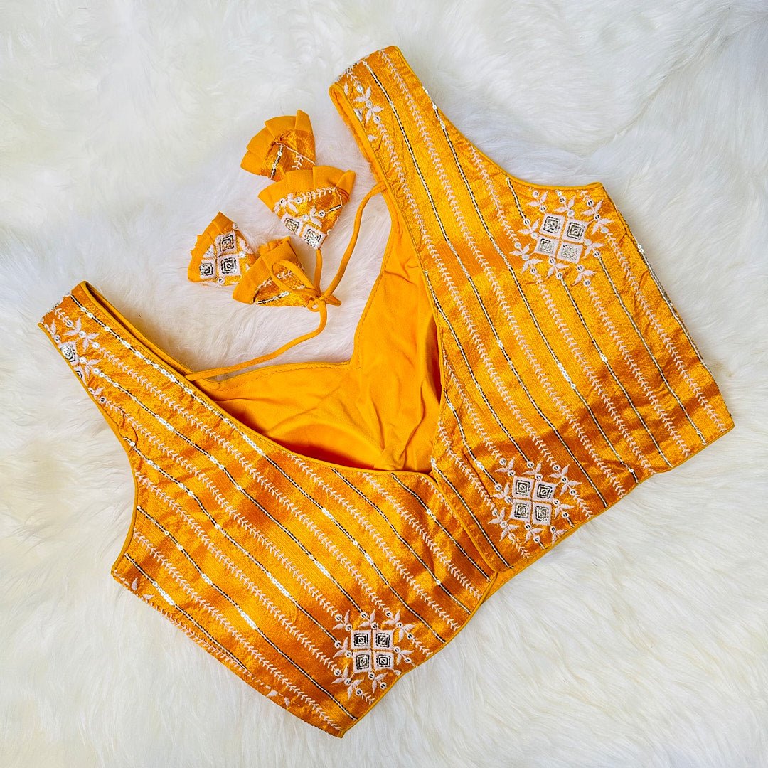 Add a pop of sunshine to your wardrobe with this stunning bright yellow raw silk blouse. The intricate full embroidery elevates the blouse to a work of art, making it perfect for special occasions and celebrations. The high-quality raw silk fabric is not only luxurious but also breathable and comfortable, ensuring you look and feel your best all day long. The vibrant color and exquisite embroidery make this blouse a statement piece that is sure to turn heads and leave a lasting impression.