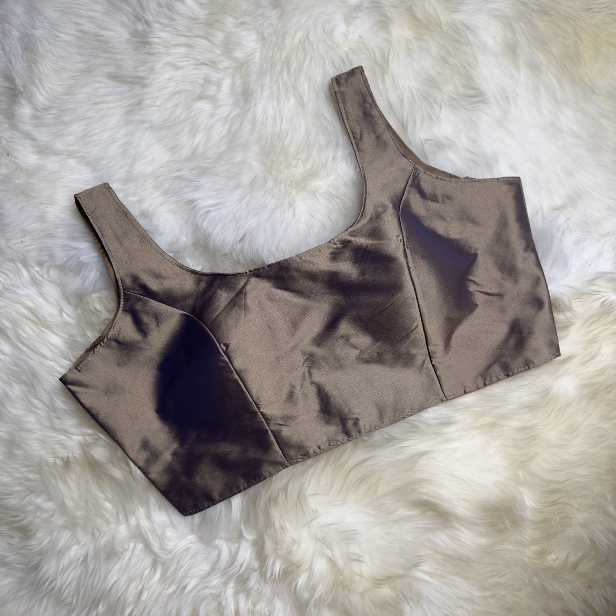 Sleek and Sophisticated Bronze Silk Blouse - swadeshsouq.com