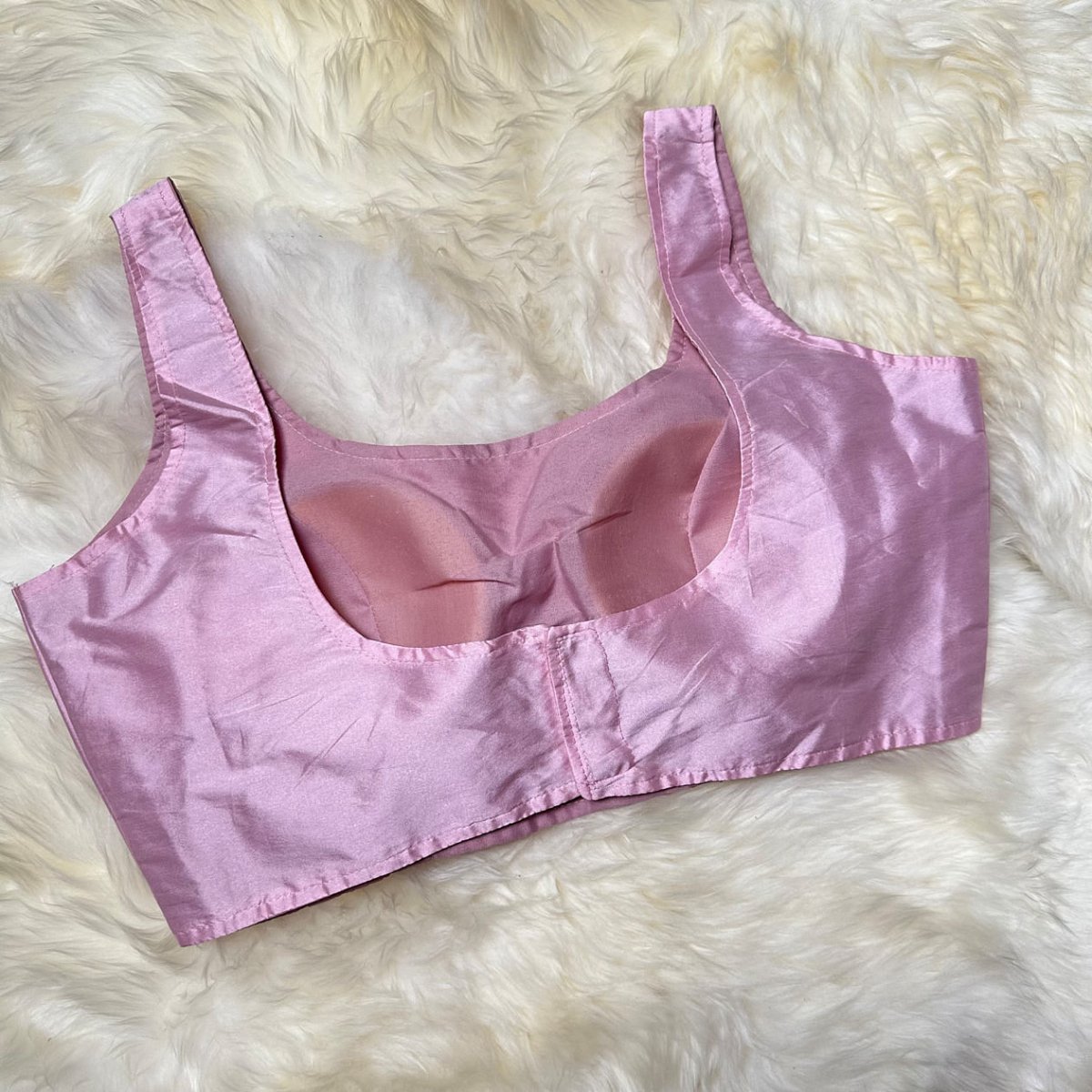 Add a touch of elegance to your traditional attire with this soft pink silk blouse. Crafted from smooth, high-quality silk, this blouse embodies sophistication and charm. The pastel pink shade gives a soft, feminine appeal that pairs beautifully with sarees or lehengas for festive occasions or wedding celebrations. The blouse comes with attached sleeves, offering style versatility. Available in an adjustable size range from 32 to 38, this blouse is the perfect combination of comfort and grace.