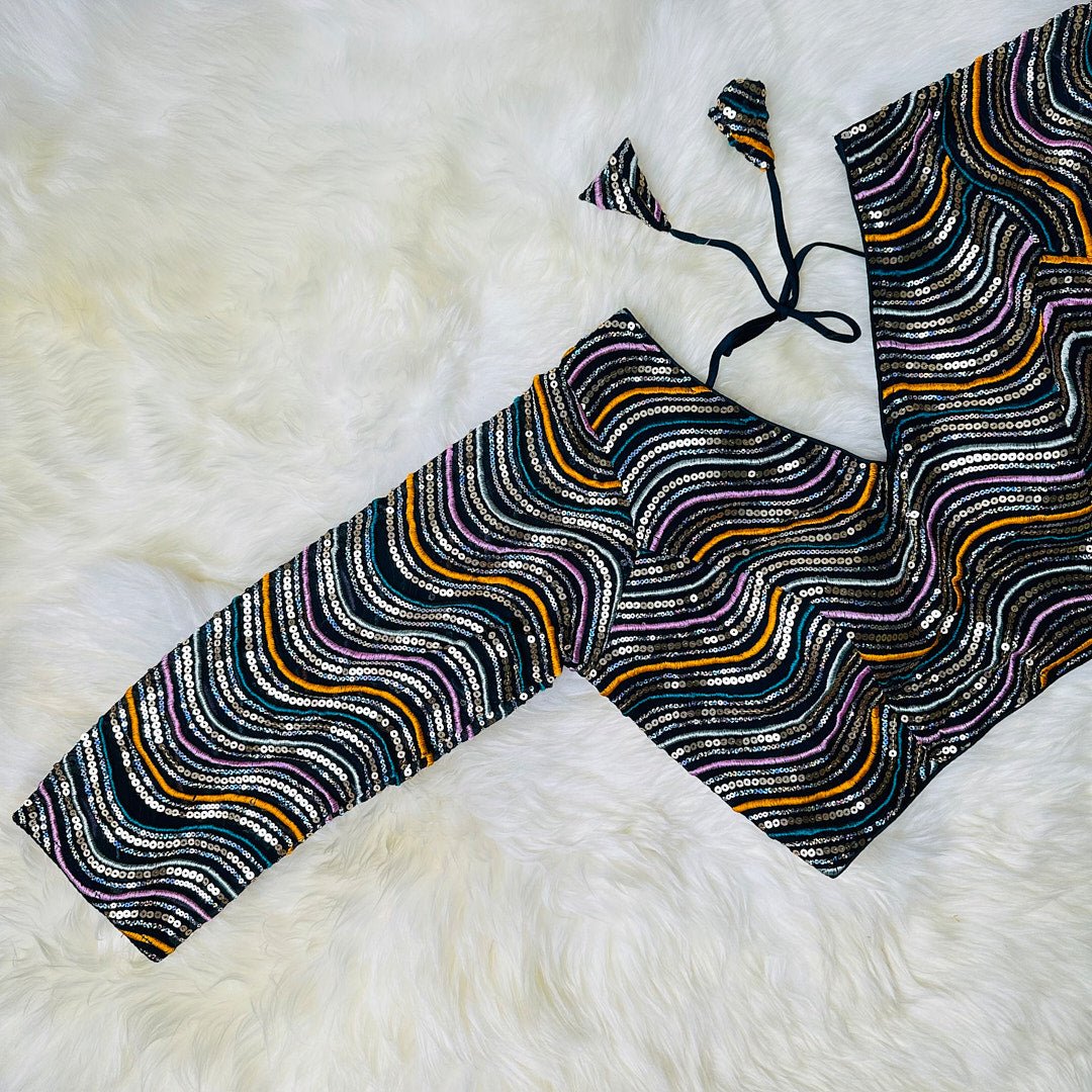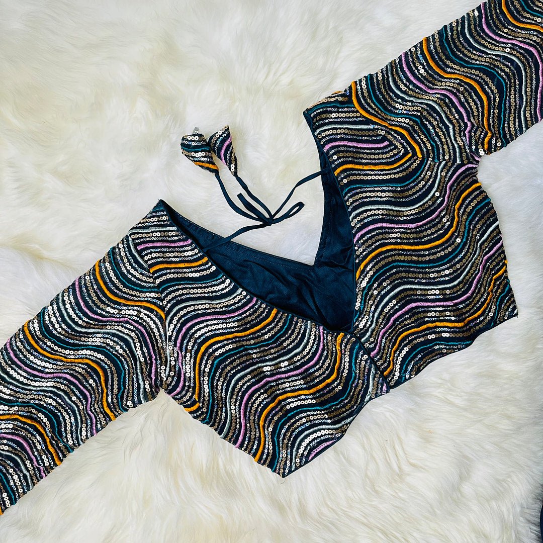 Stand Out in Style with a Deep Teal Blue Sequin-Embroidered Georgette Blouse. - swadeshsouq.com