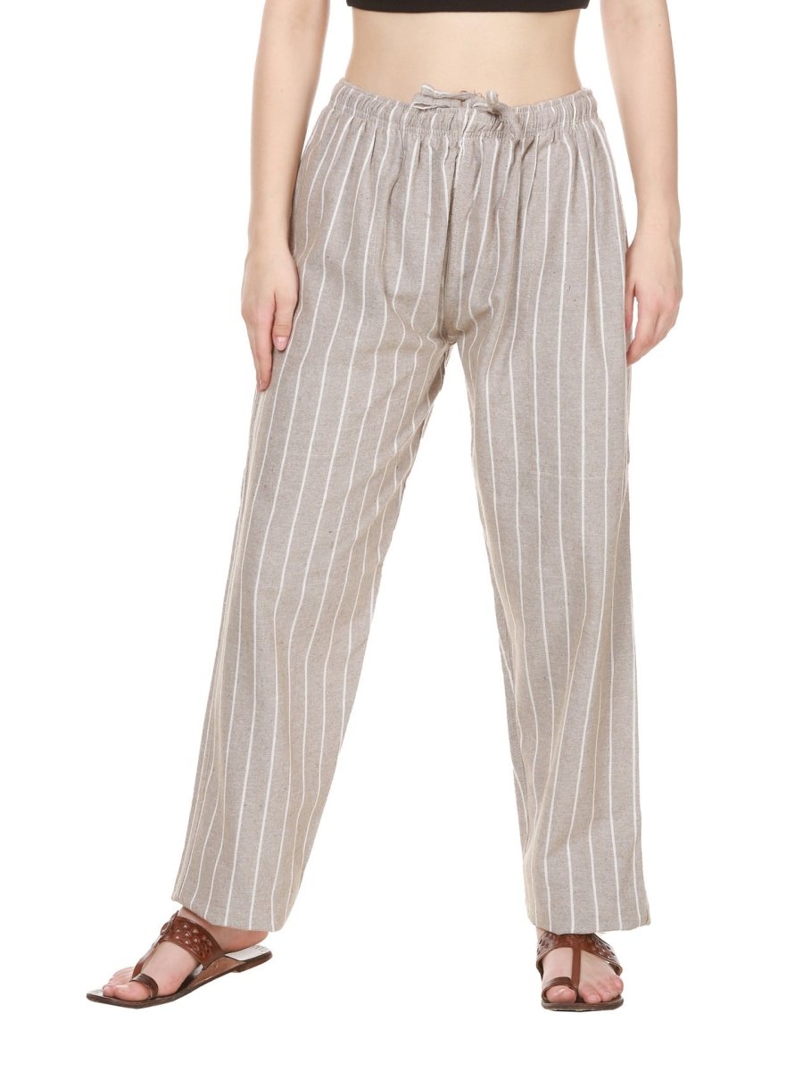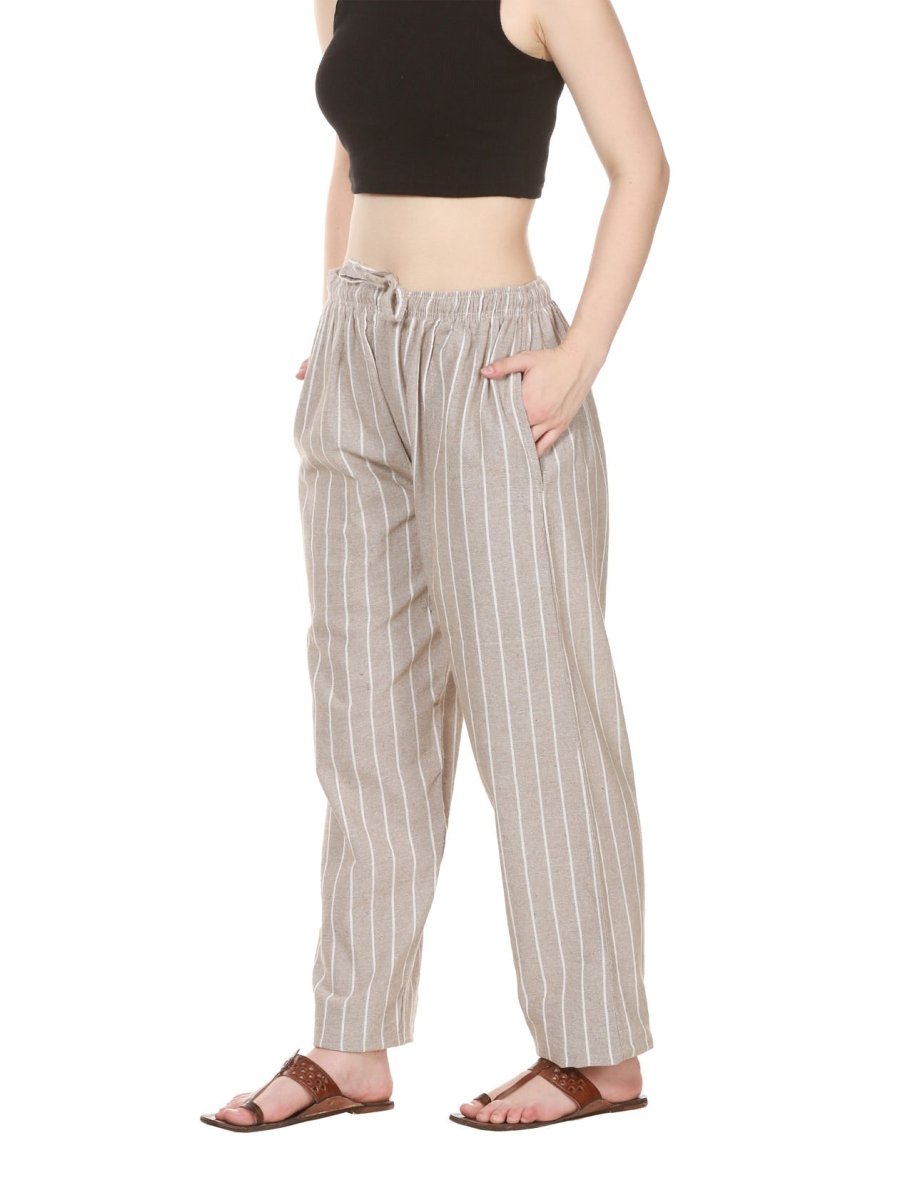 One Size Women's Eco - Friendly Cotton Pajamas| Fits Waist Size 28 to 36 Inches | Light Grey Stripes - swadeshsouq.com