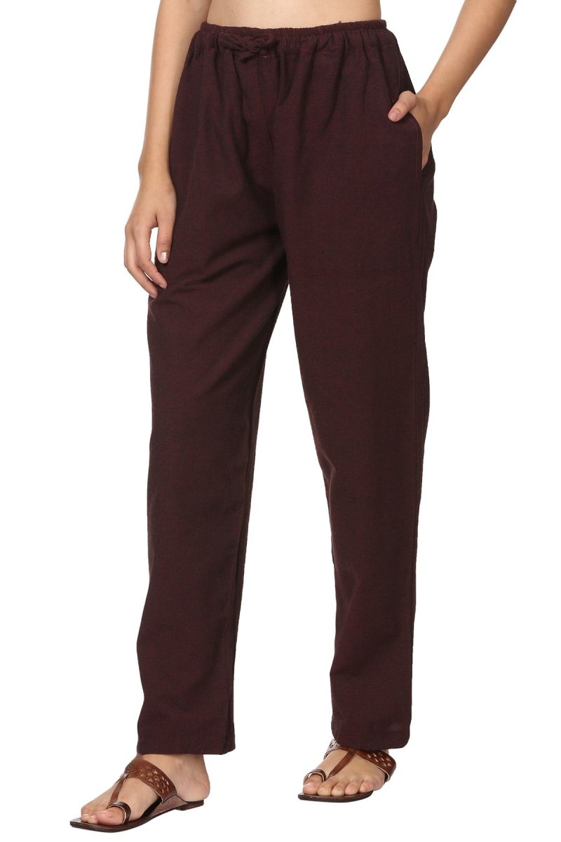 One Size Women's Eco - Friendly Cotton Pyjama | Fits Waist Size 28 to 36 Inches | Maroon - swadeshsouq.com