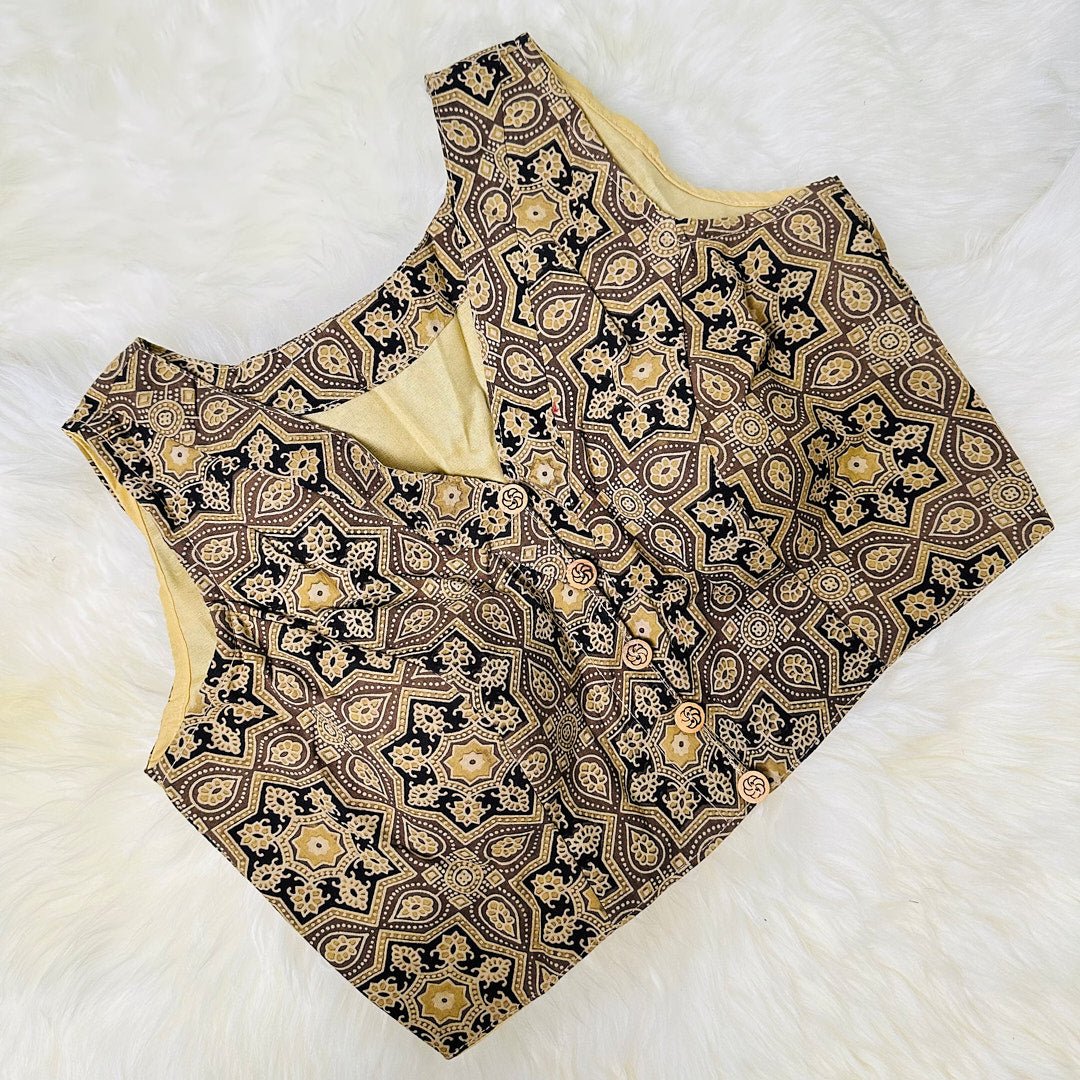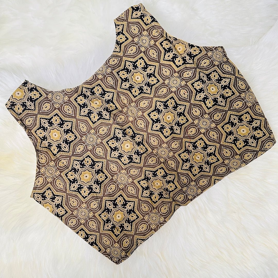 Ajrak Elegance: Intricately Designed Light Brown Cotton Blouse. - swadeshsouq.com
