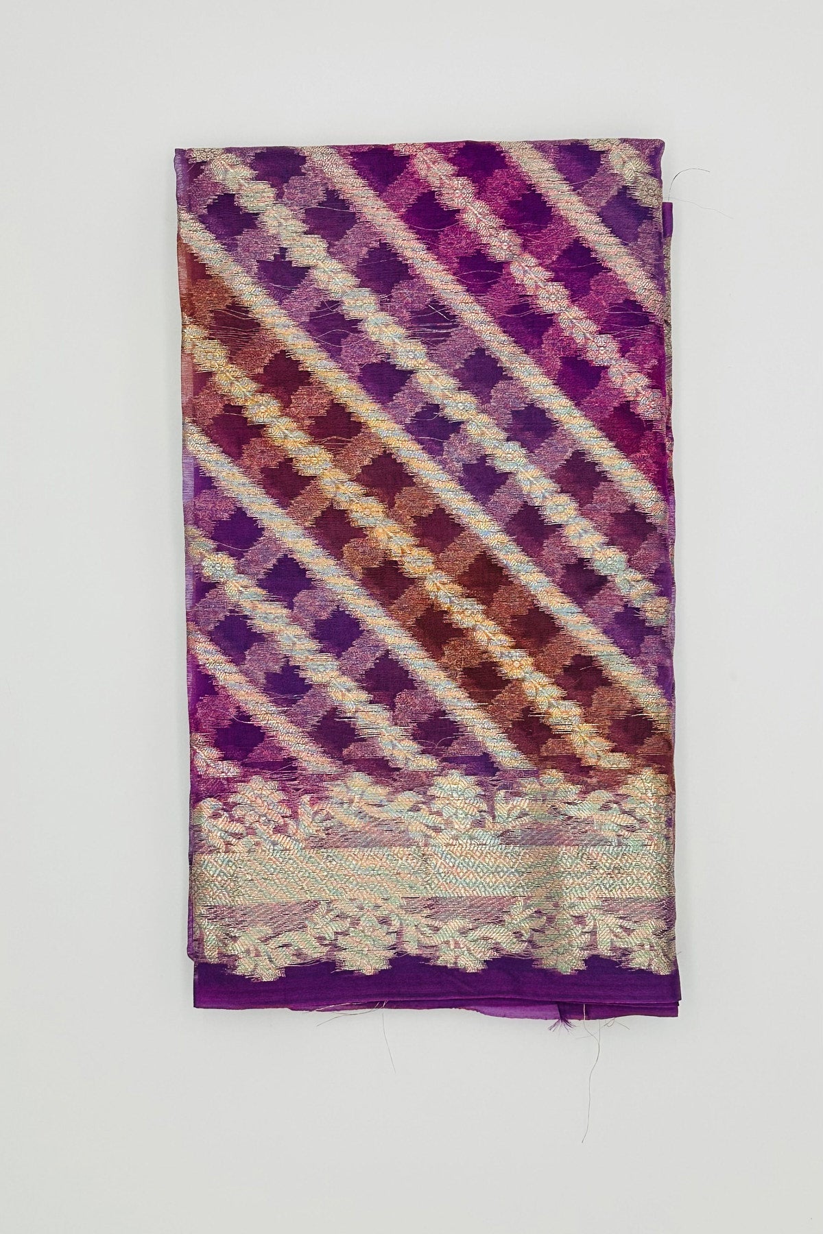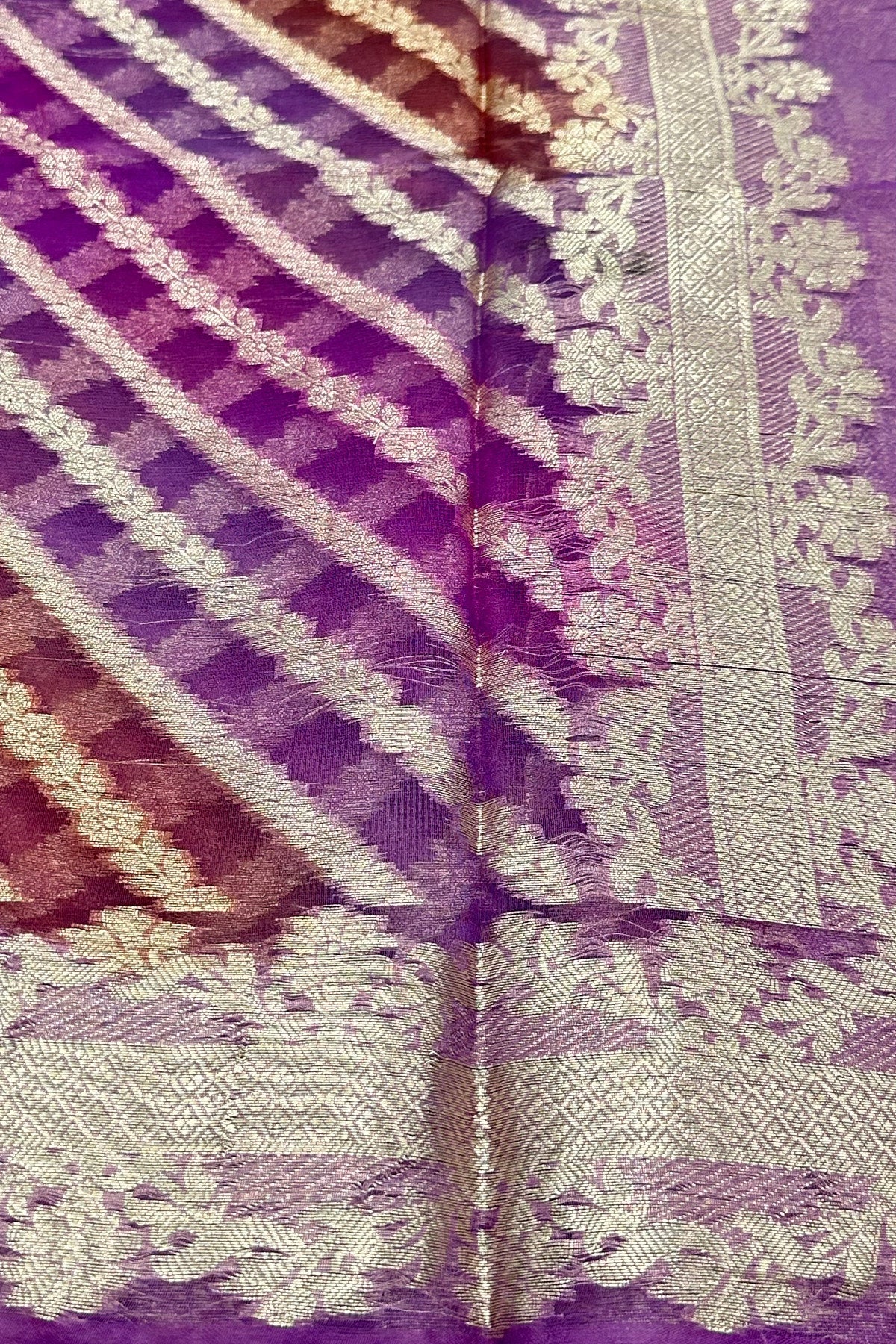 Amethyst Allure: Purple Banarasi Pure Organza Dupatta - swadeshsouq.com